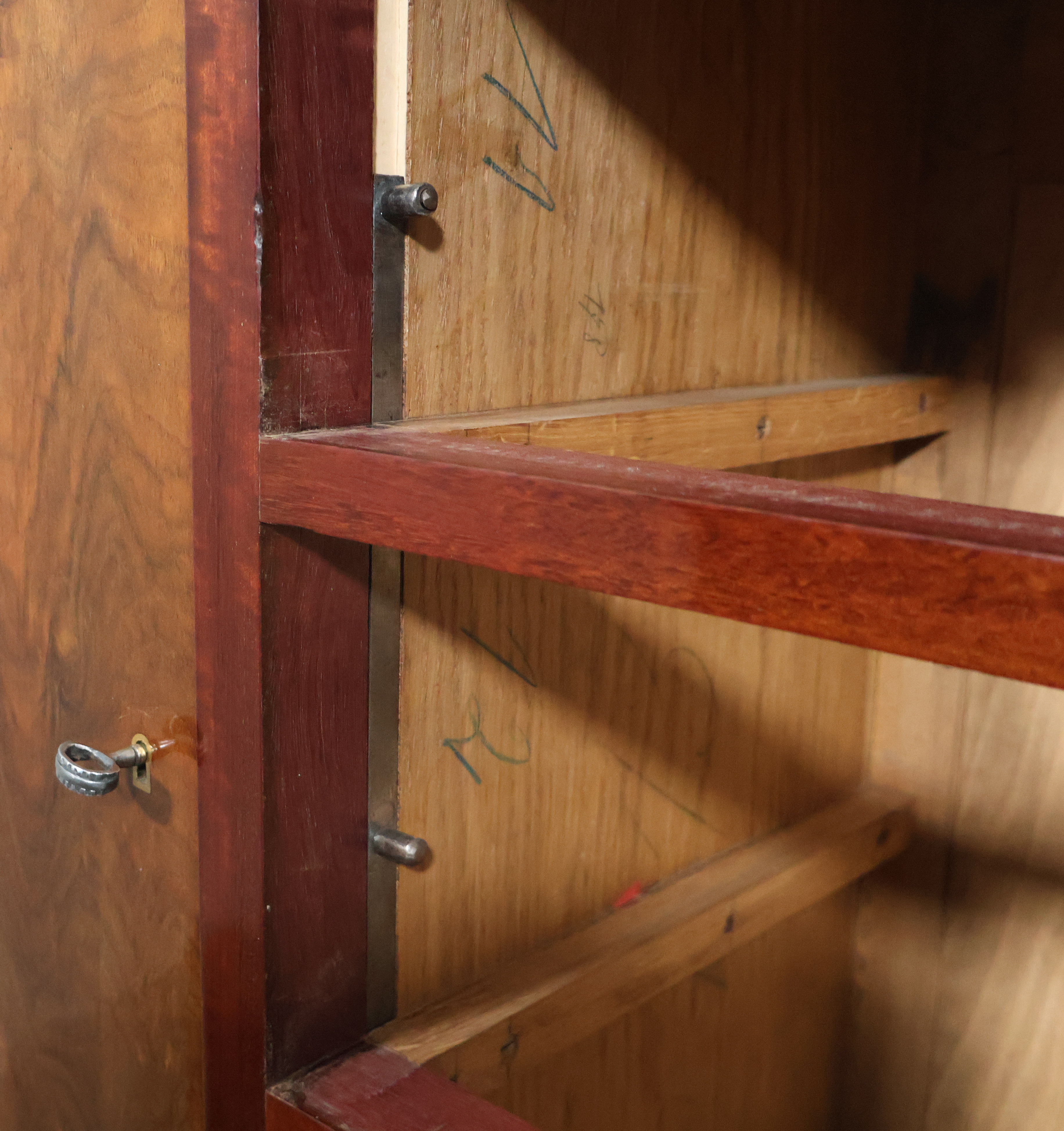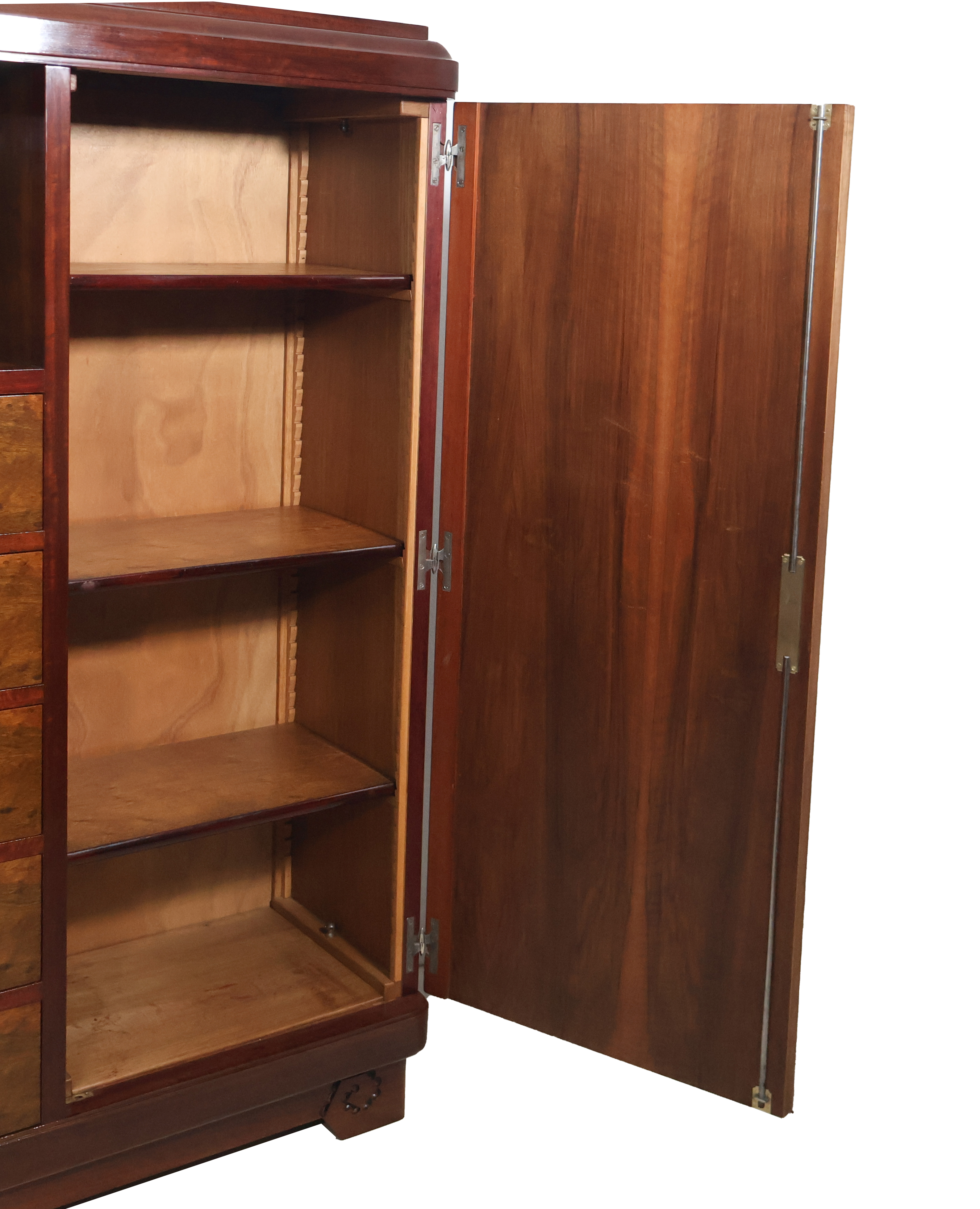 Bibliothèque en placage de noyer et acajou massif d’époque art déco