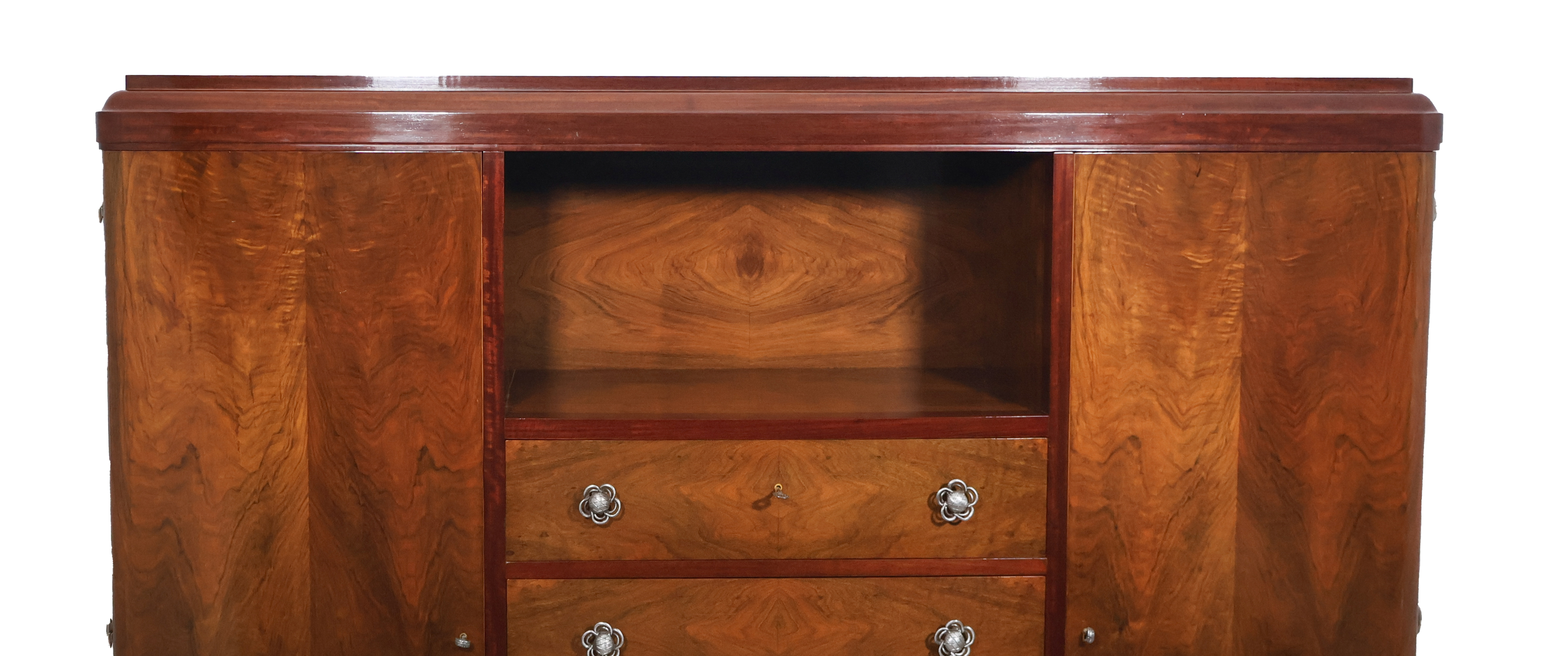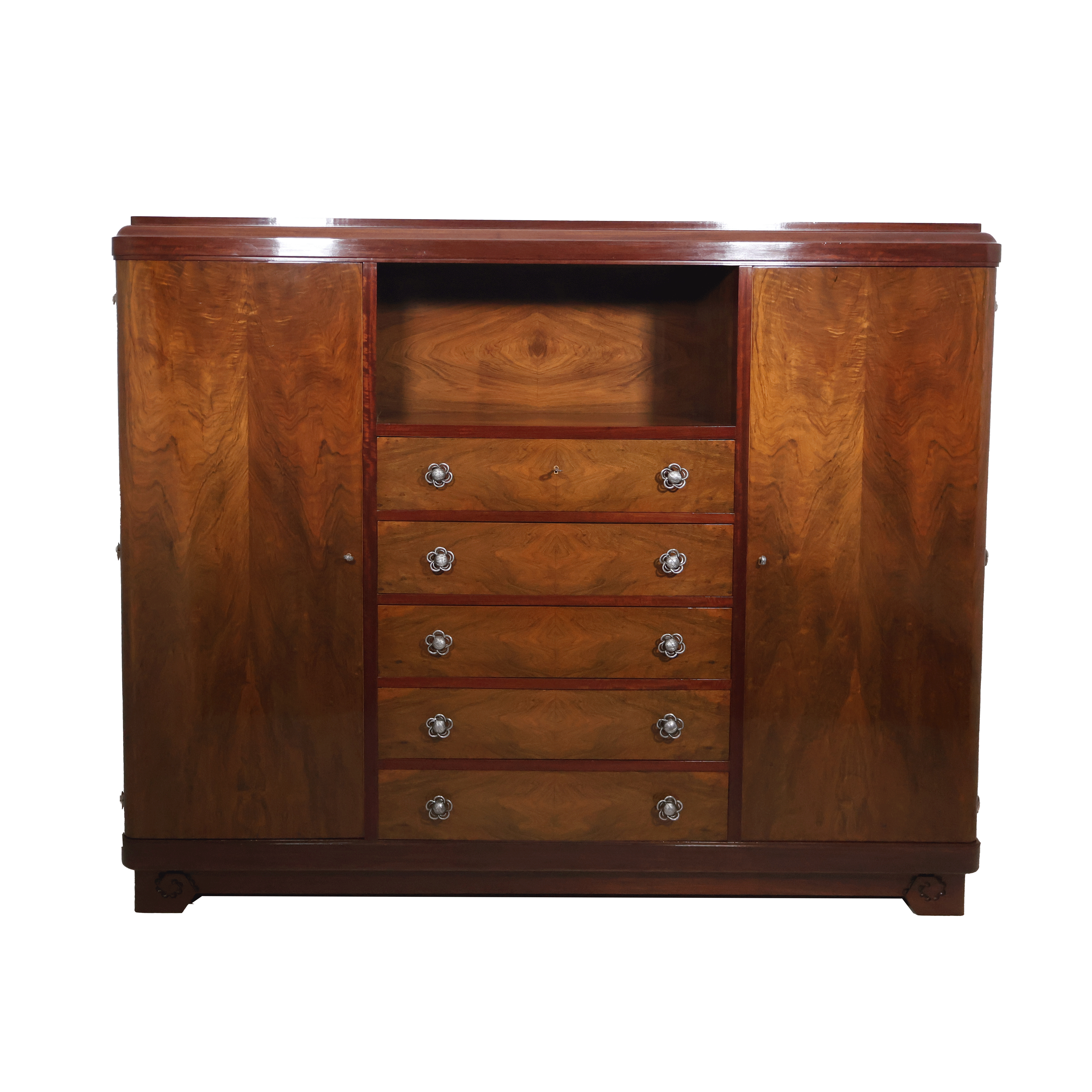 Ouvrant à 2 portes en façade et 5 tiroirs aux centre surmontés d’une niche
