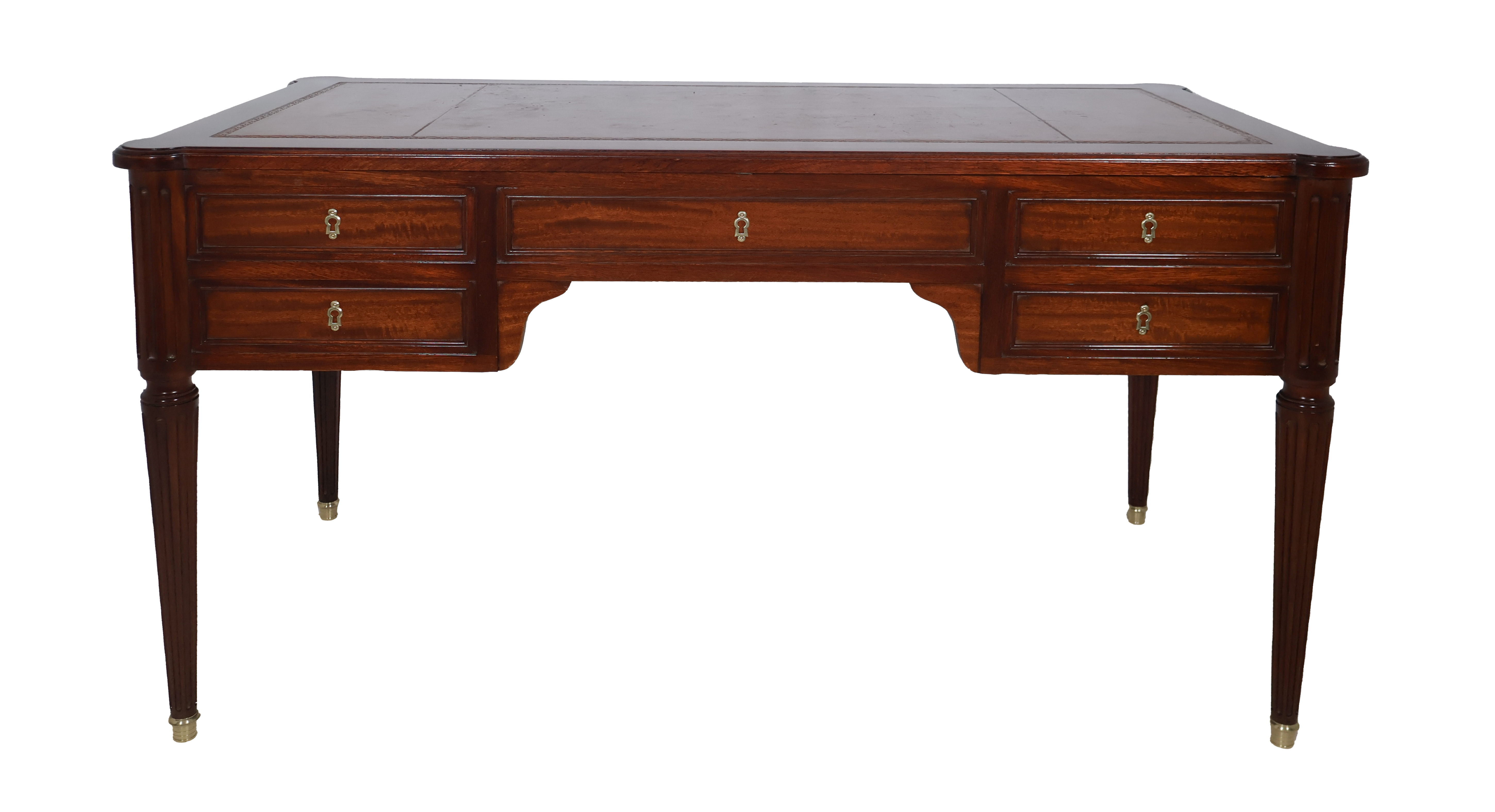 Bureau plat double face à tirettes, style Louis XVI, début XXe siècle.