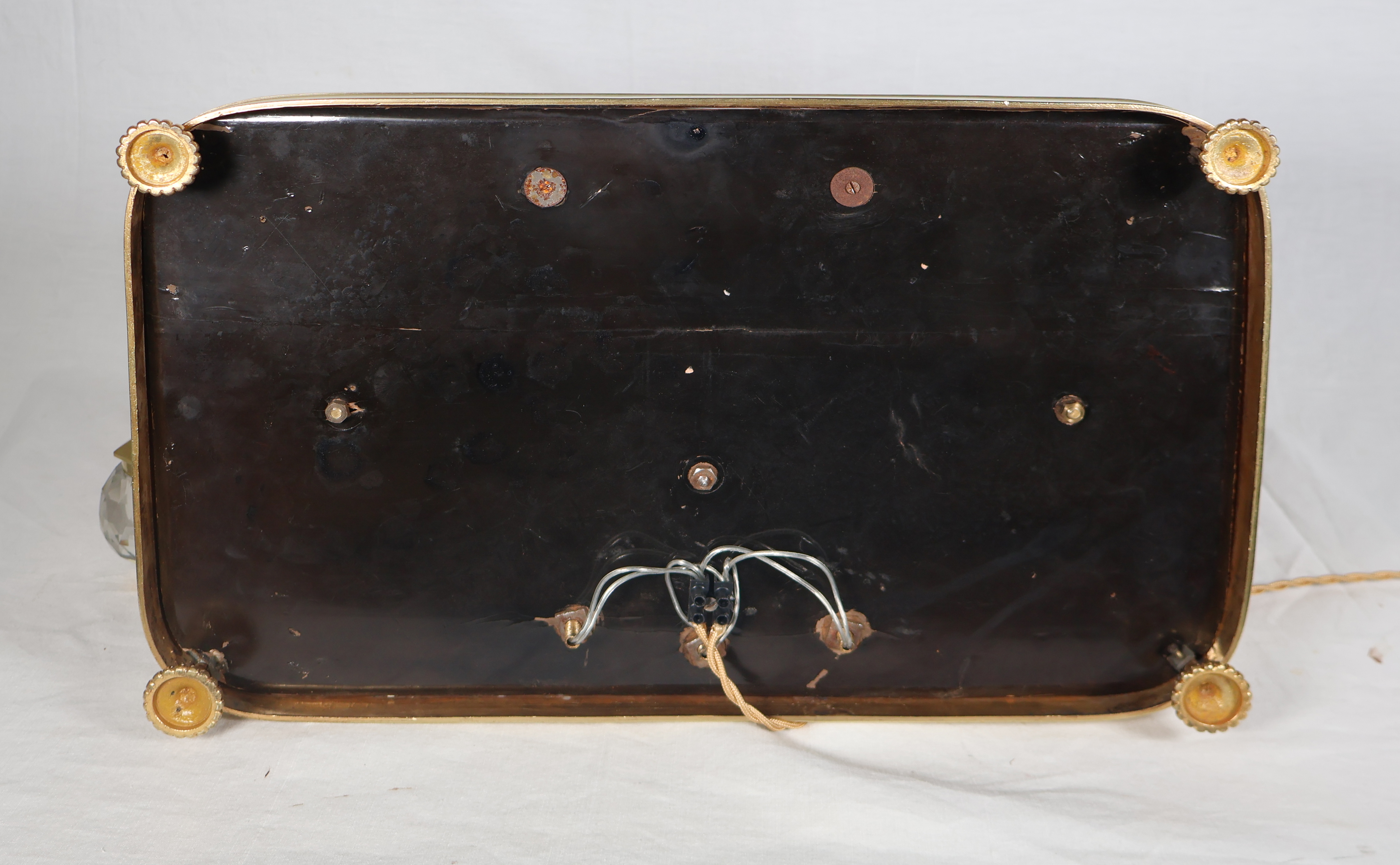 Le tout sur un socle rectangulaire bordé d’une monture en bronze doré, reposant sur quatre pieds boule.