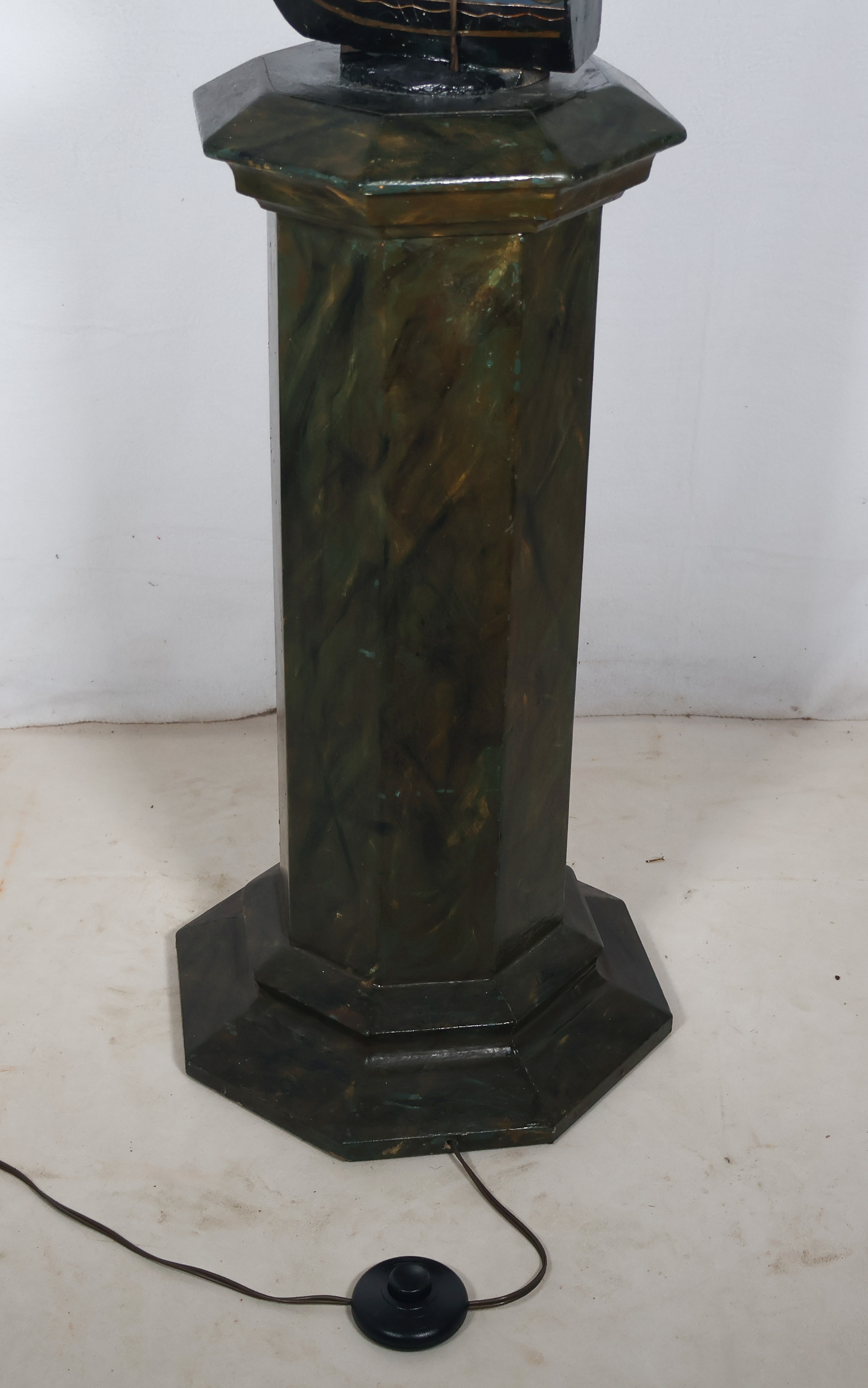 L’ensemble repose sur un socle octogonal en bois peint à l’imitation du marbre vert