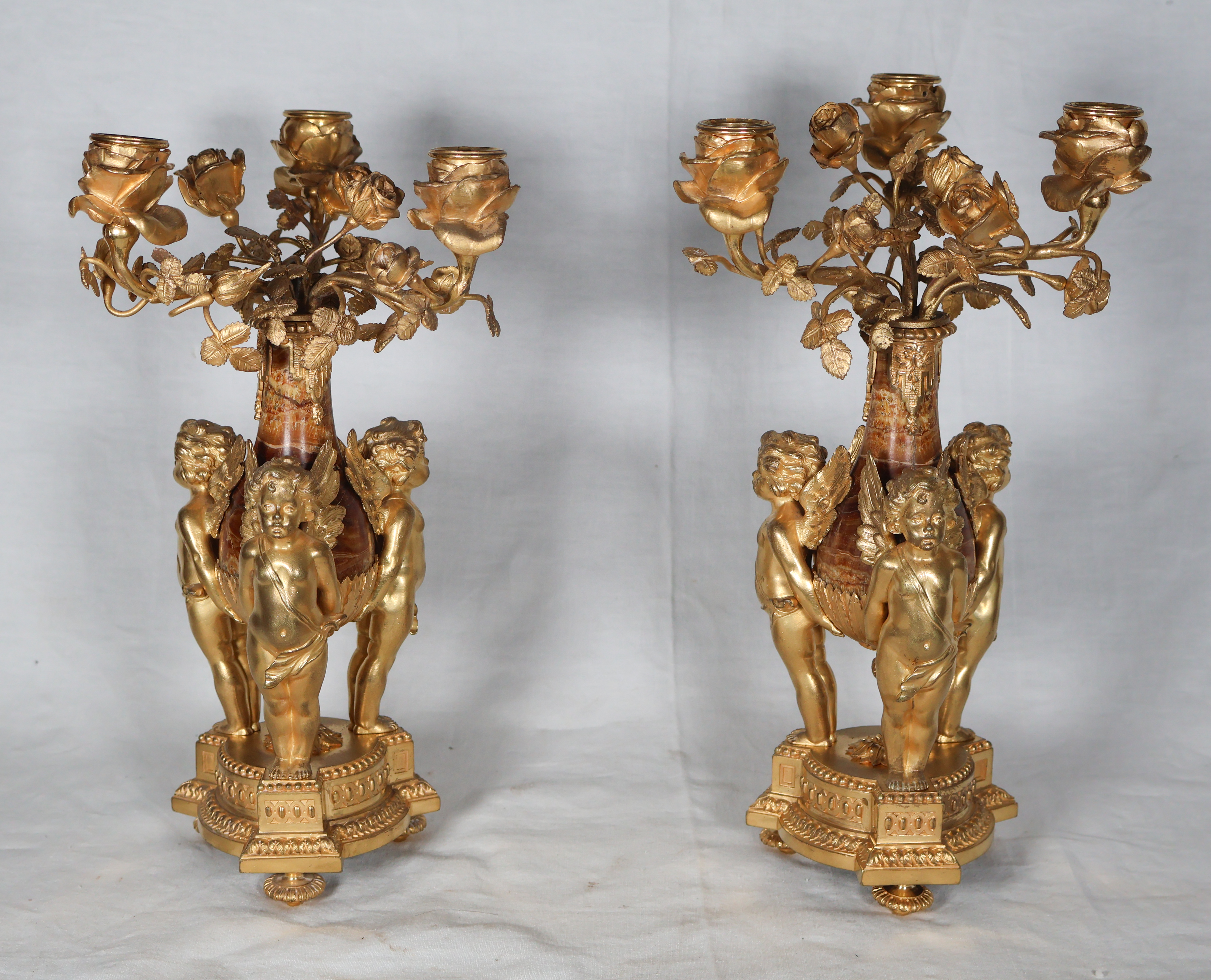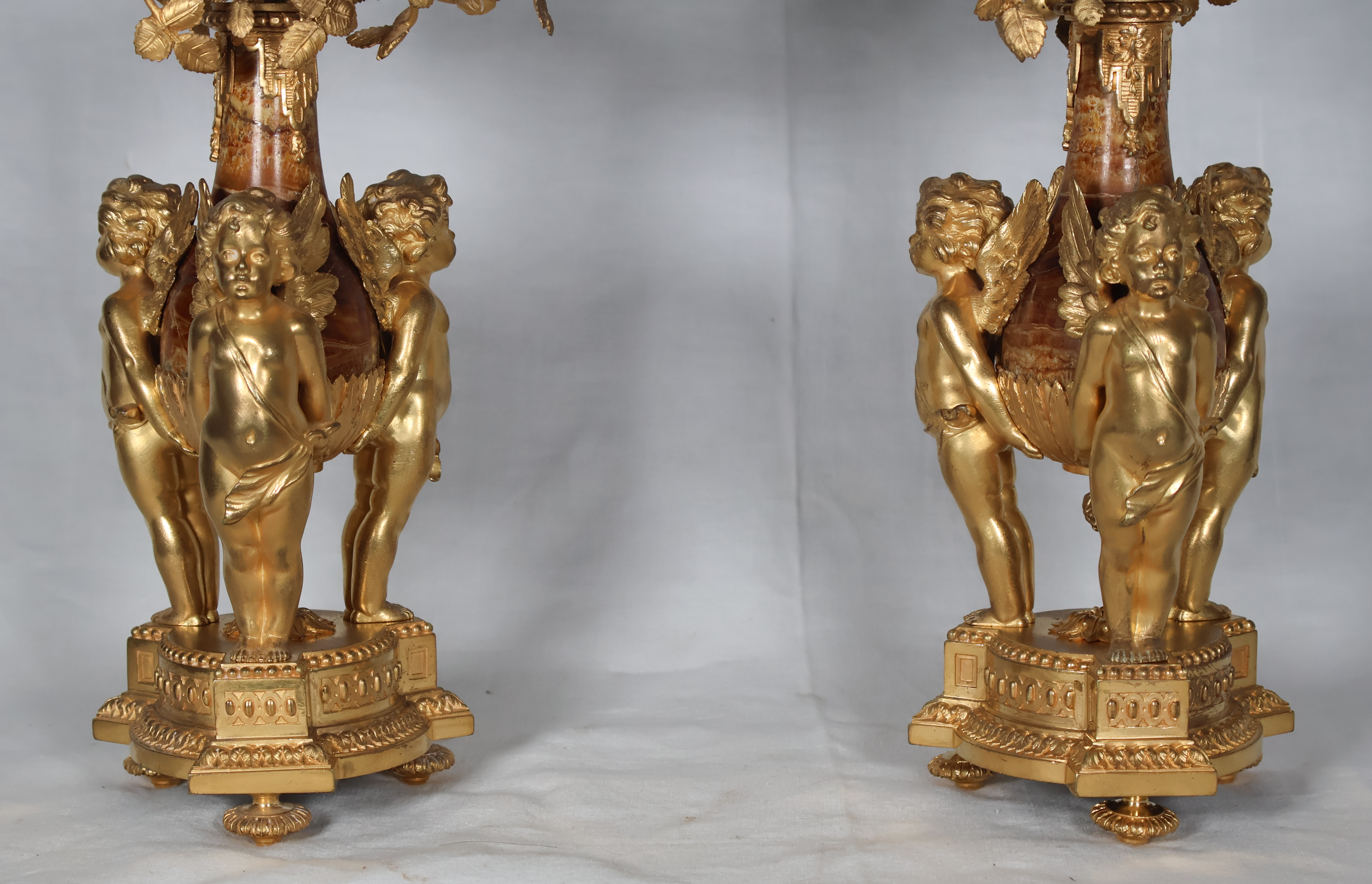 Paire de candélabres aux putti en bronze doré et marbre Époque XIXe siècle