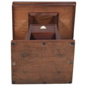 Le plateau, pivotant, se déploie pour dévoiler une surface garnie de feutrine (refaite) conçue pour les jeux de cartes et de société