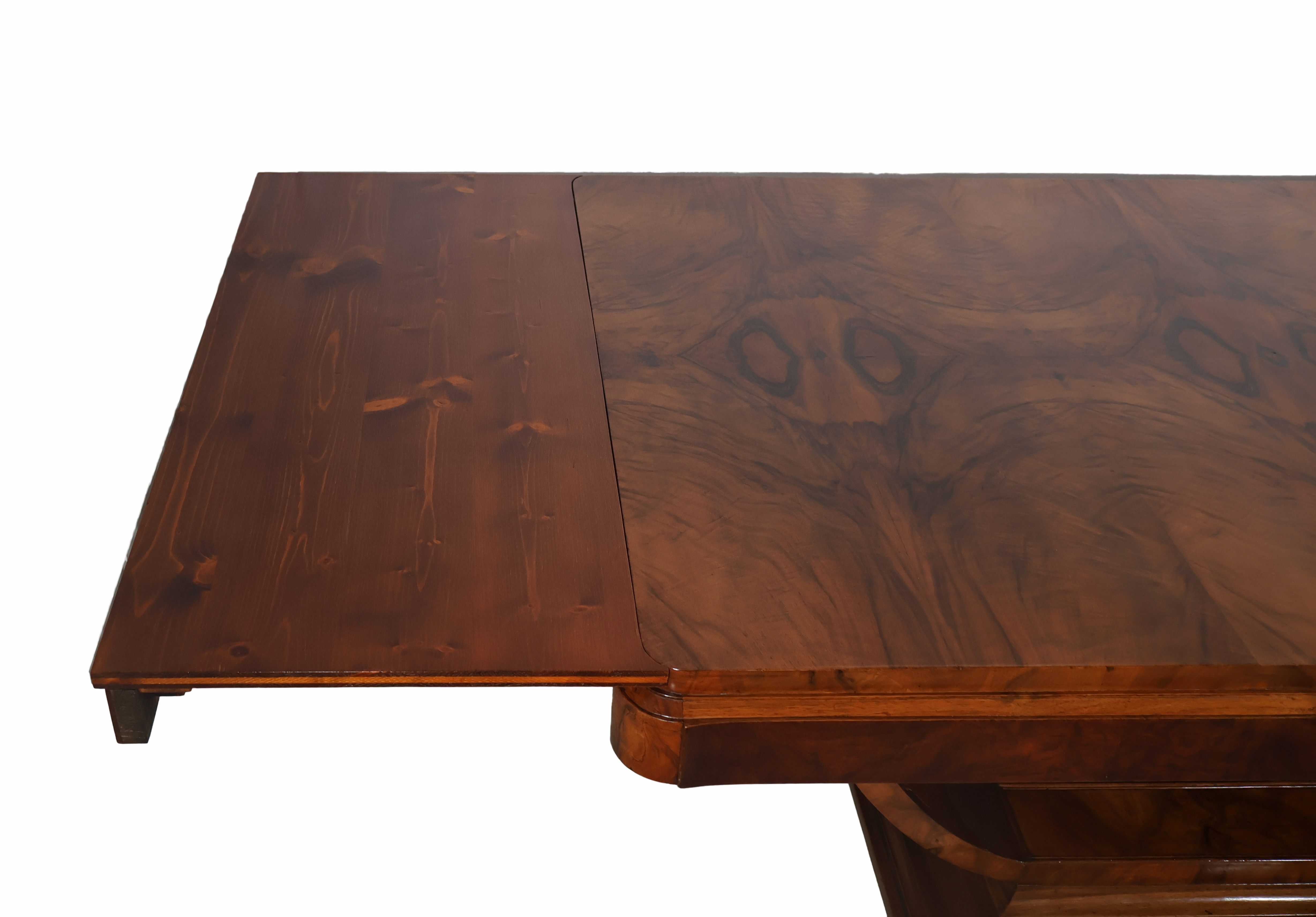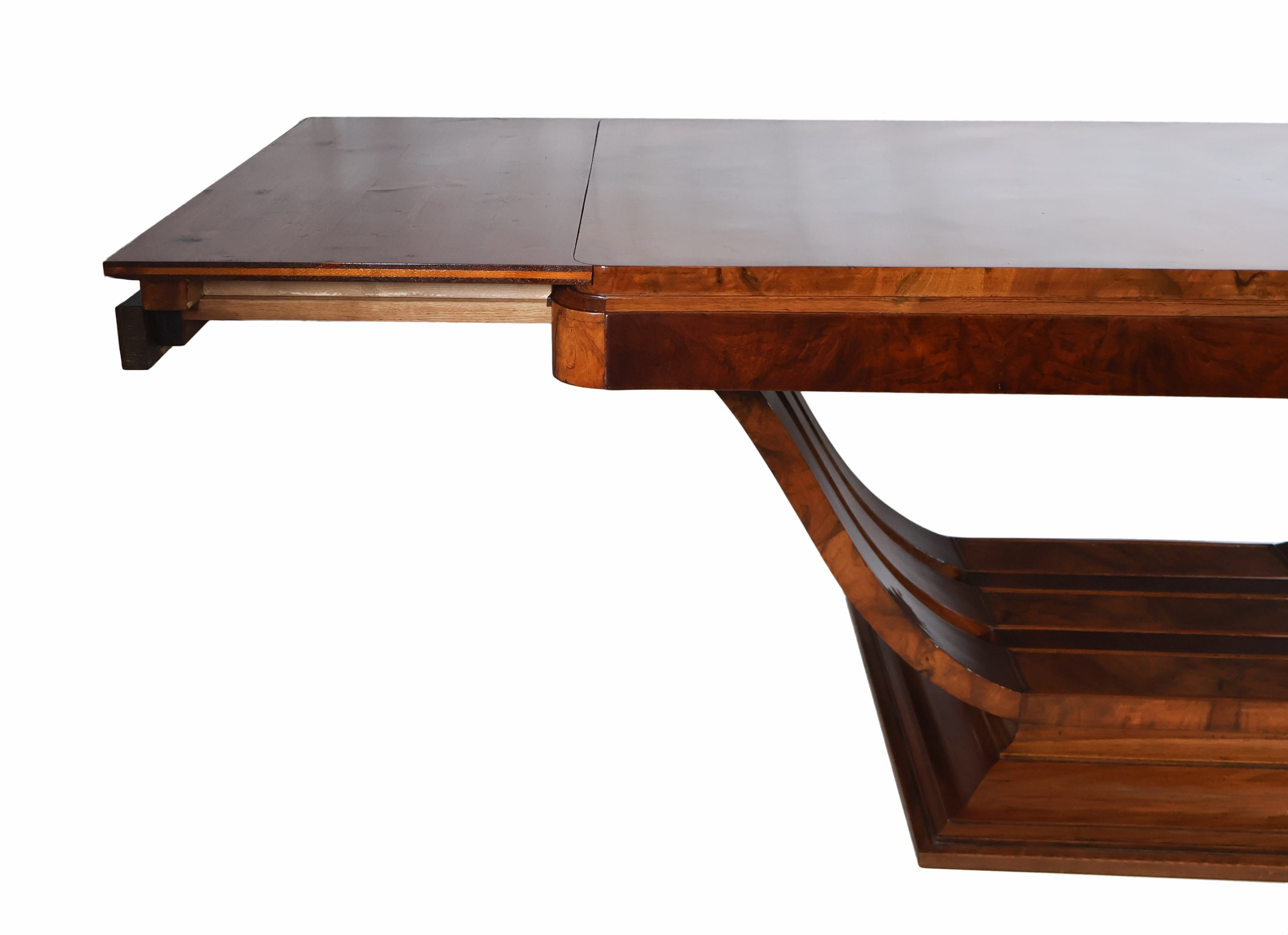 La table s’étend jusqu’à 2,50 mètres avec l’ajout de deux rallonges fabriquées sur mesure