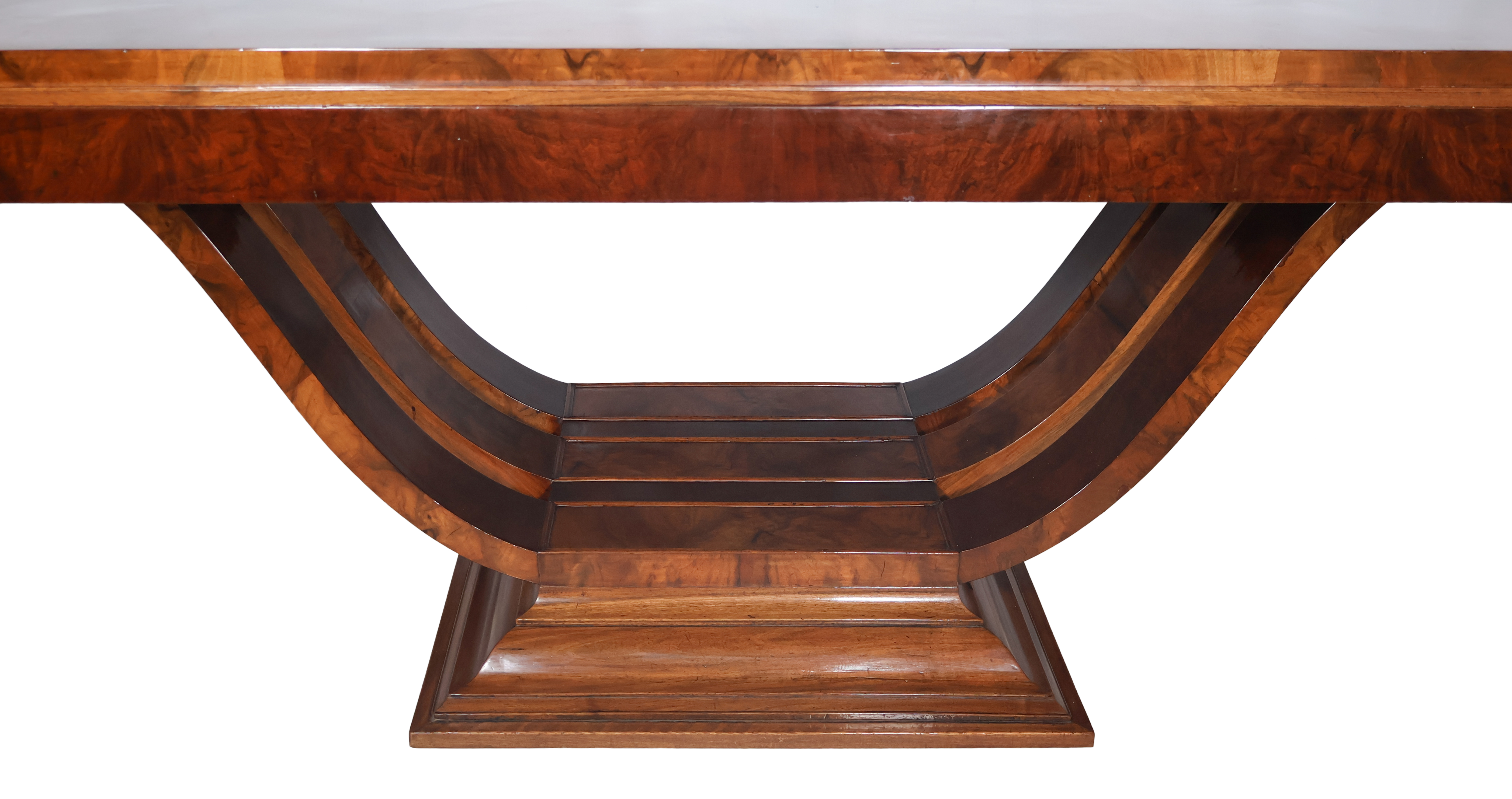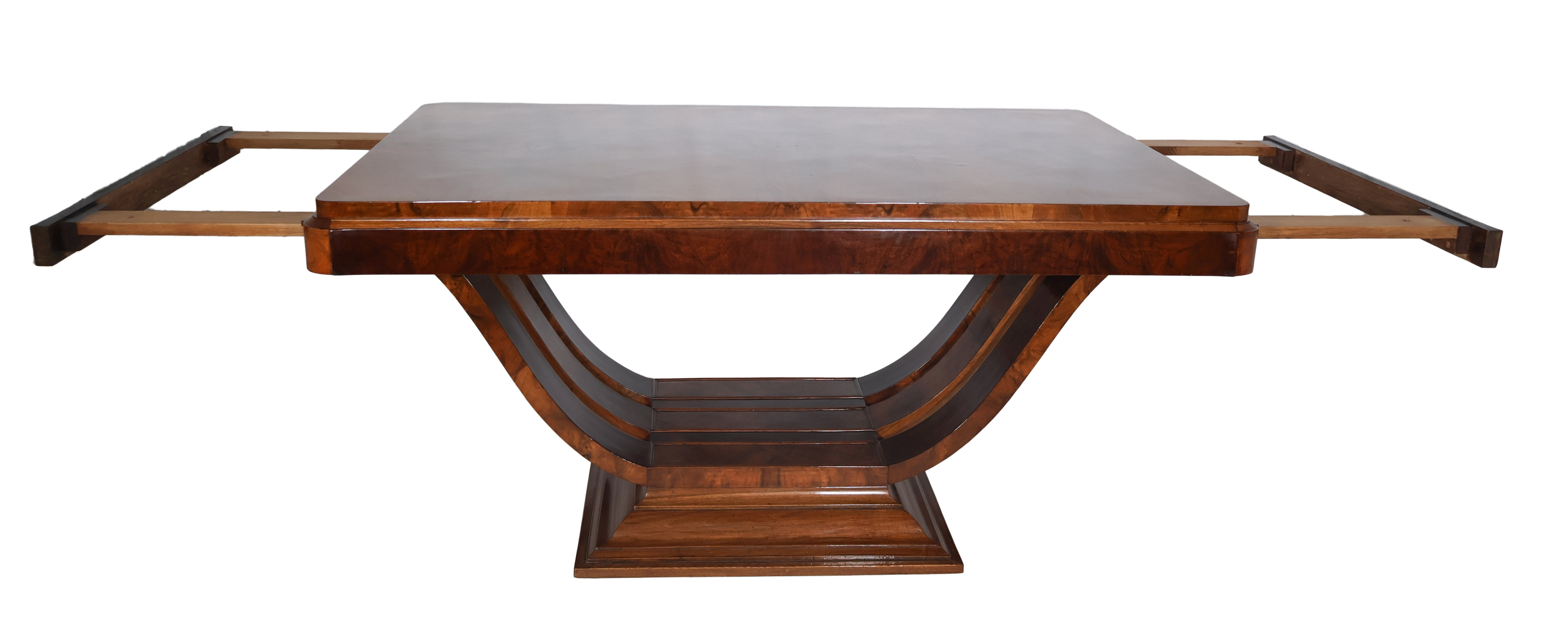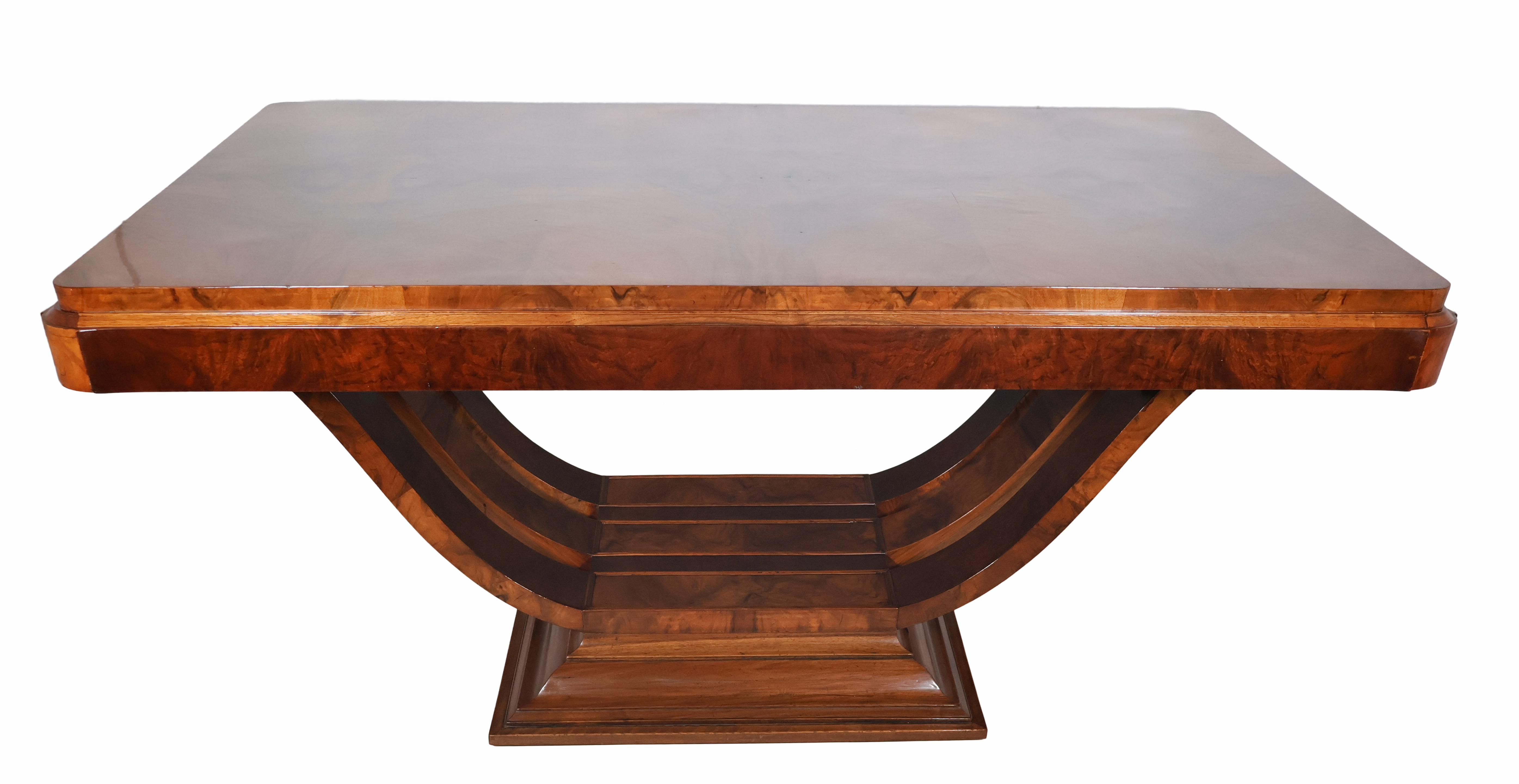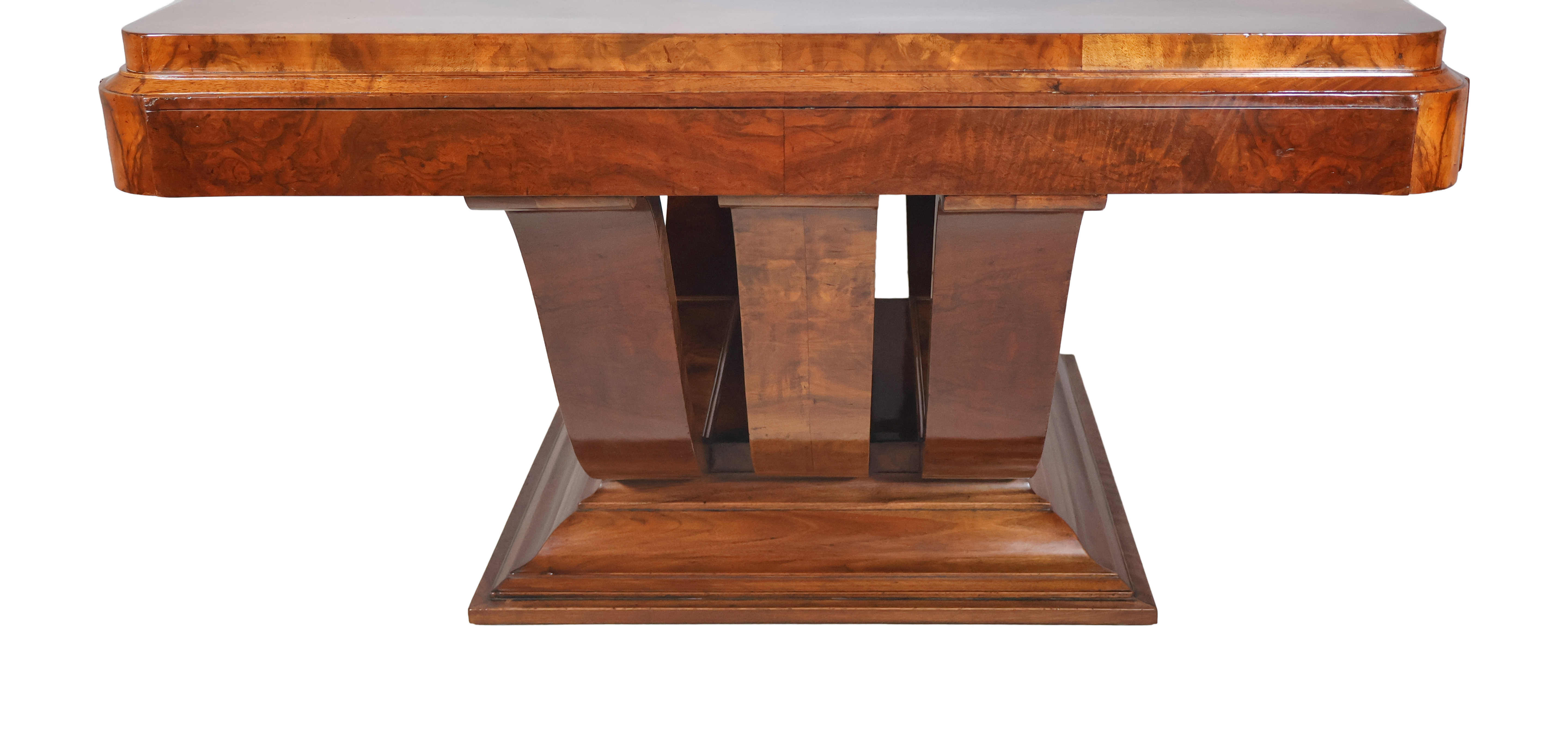 Plateau rectangulaire reposant sur un piétement en triple bandeau curule