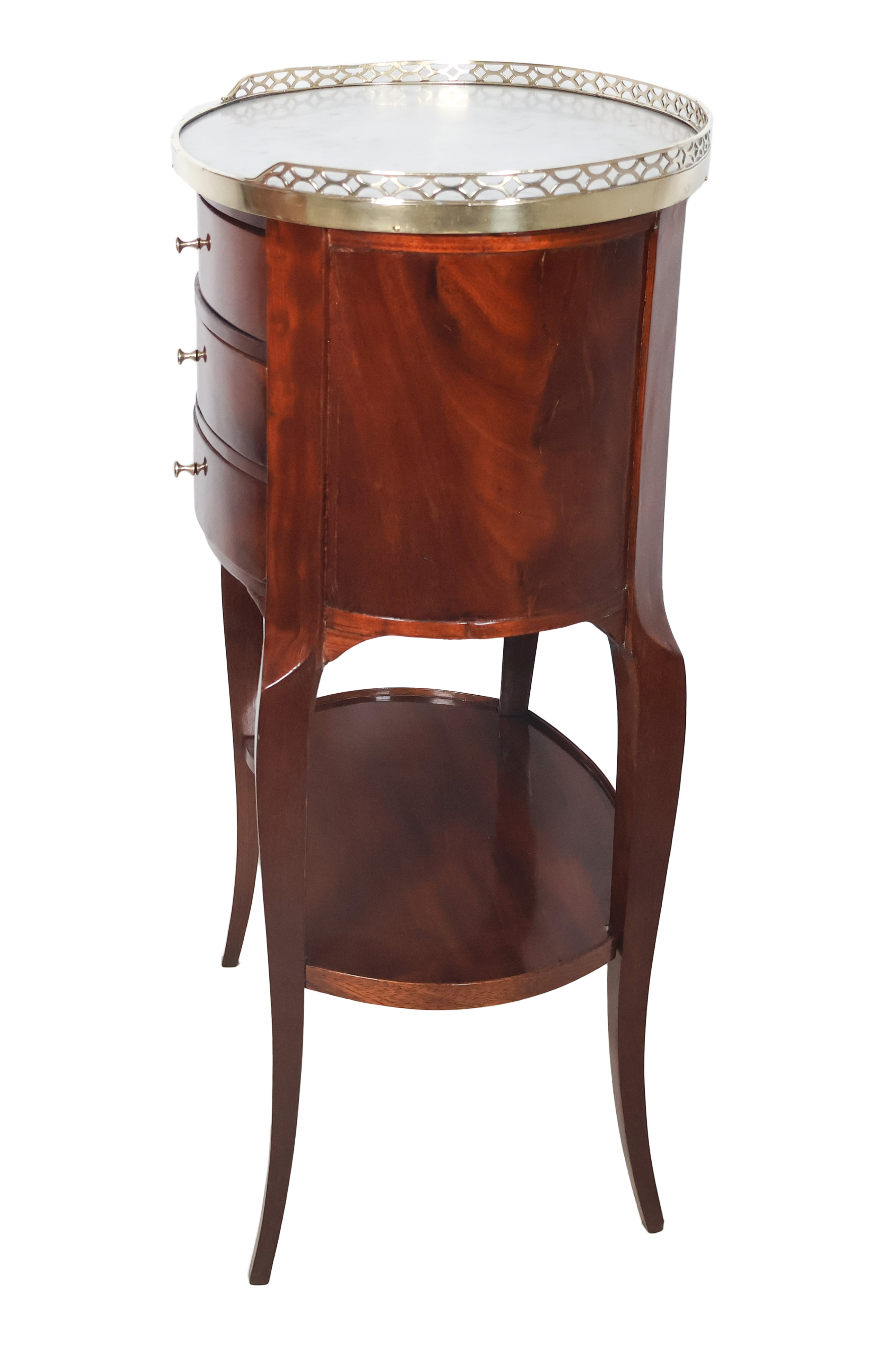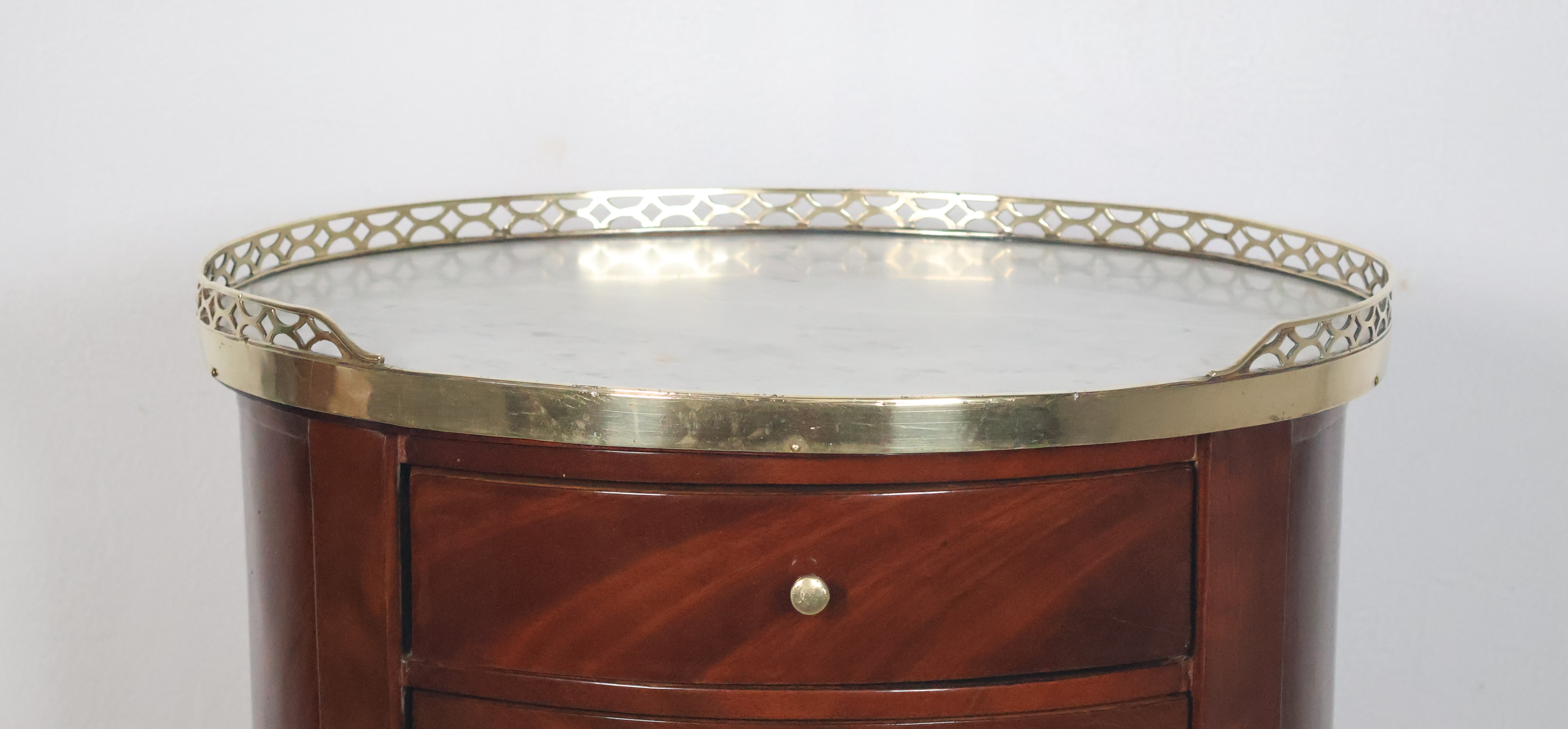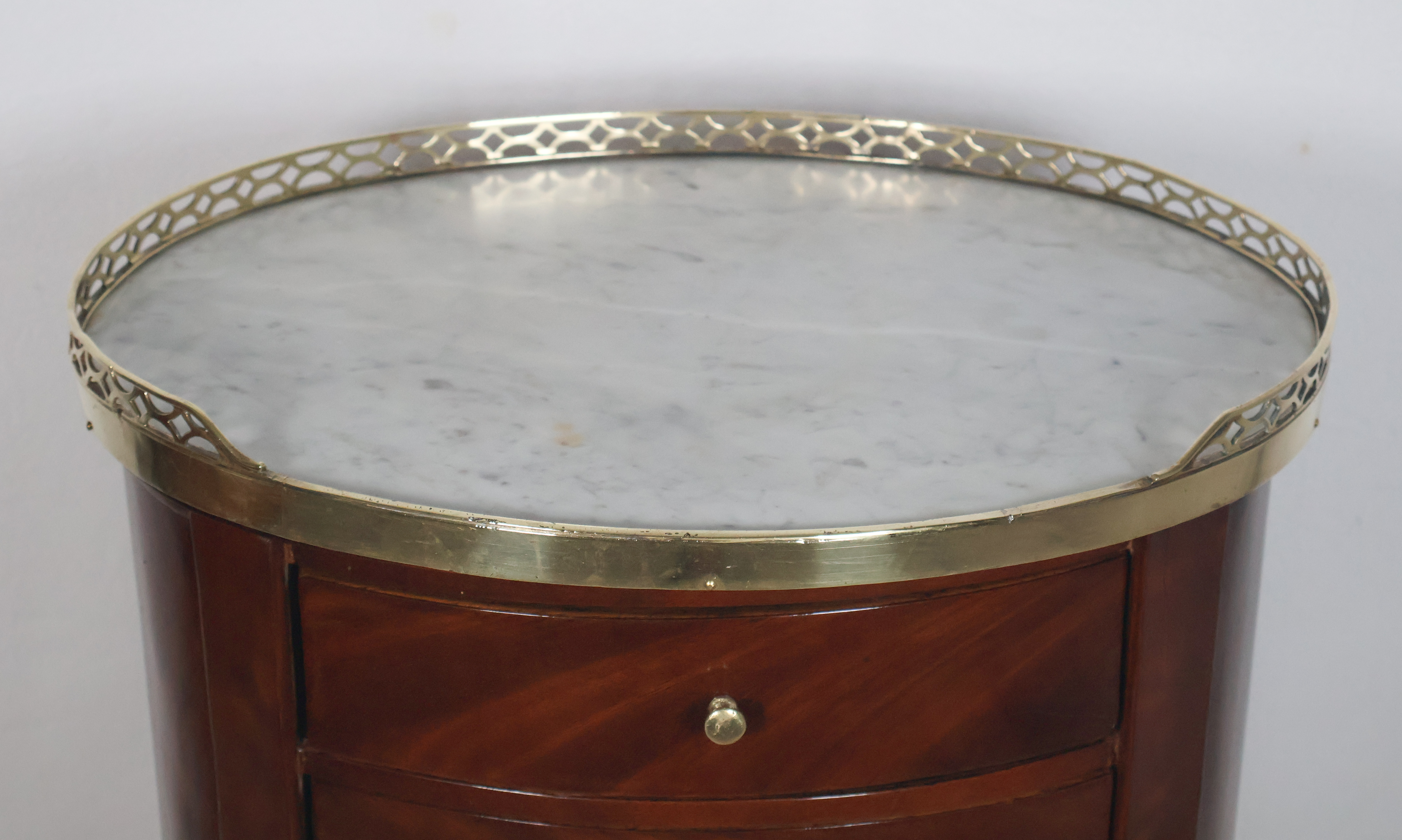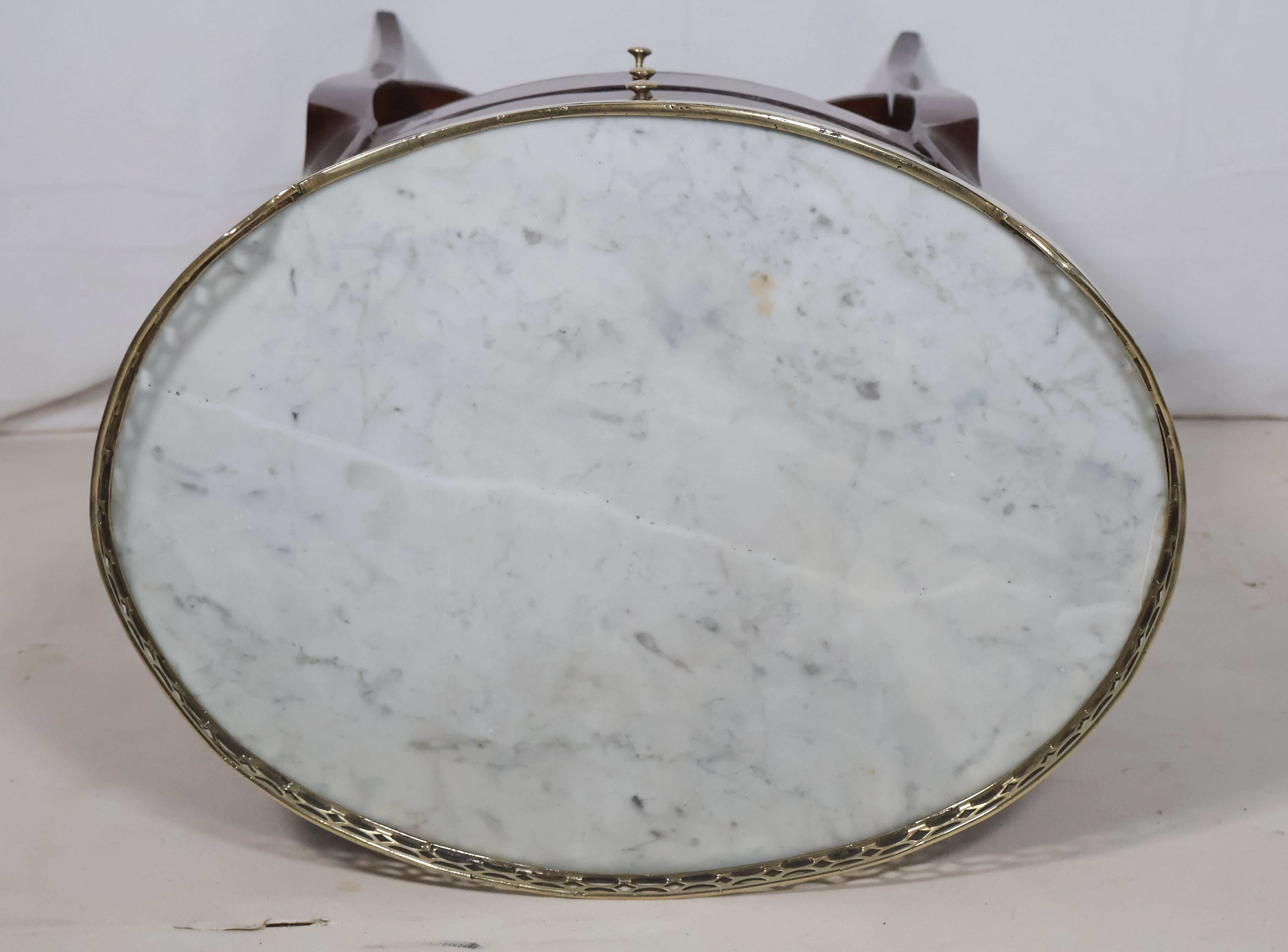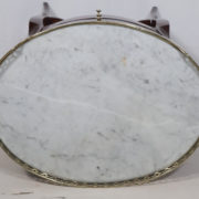 Dessus en marbre blanc entouré d’une galerie ajourée en bronze doré.