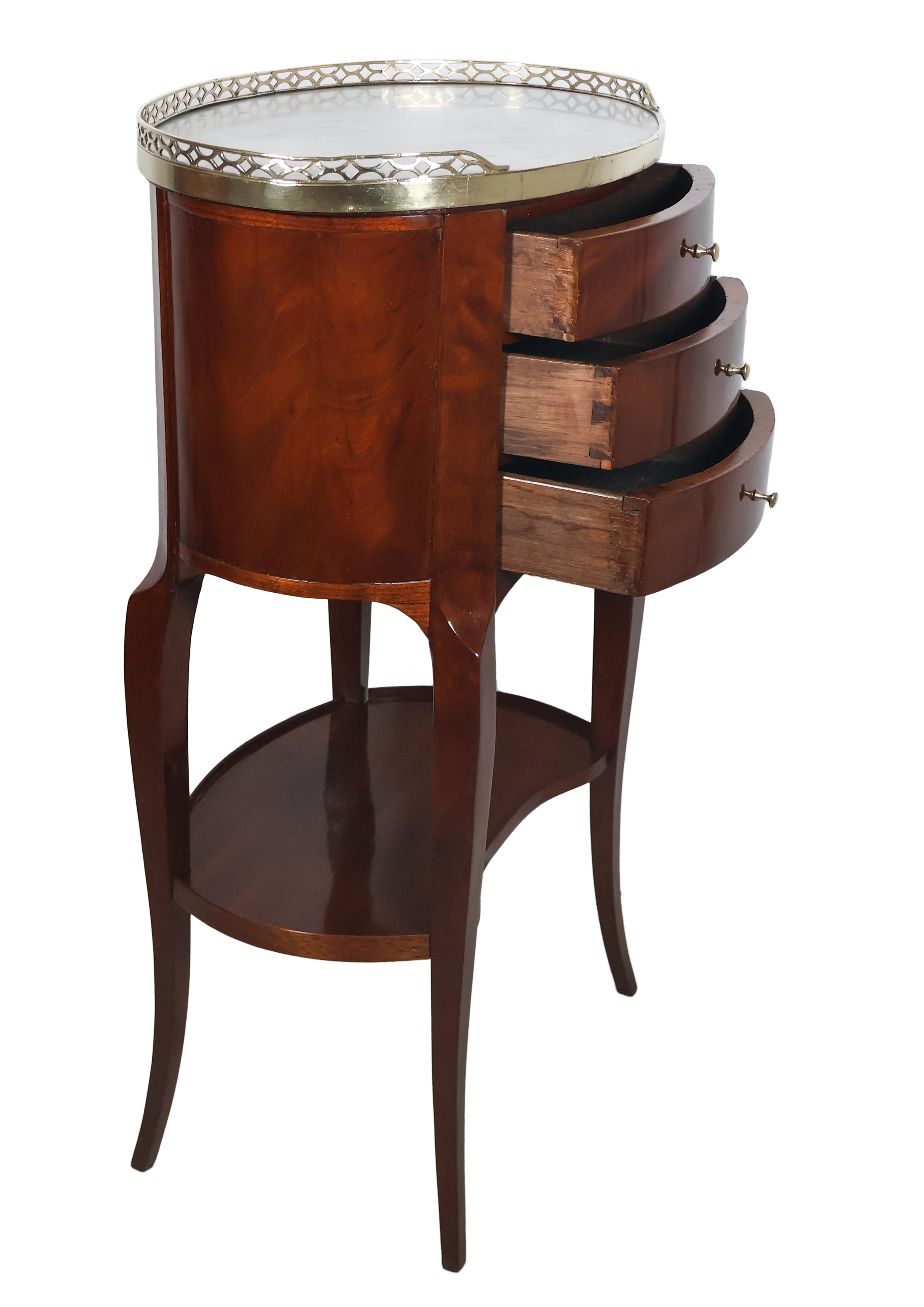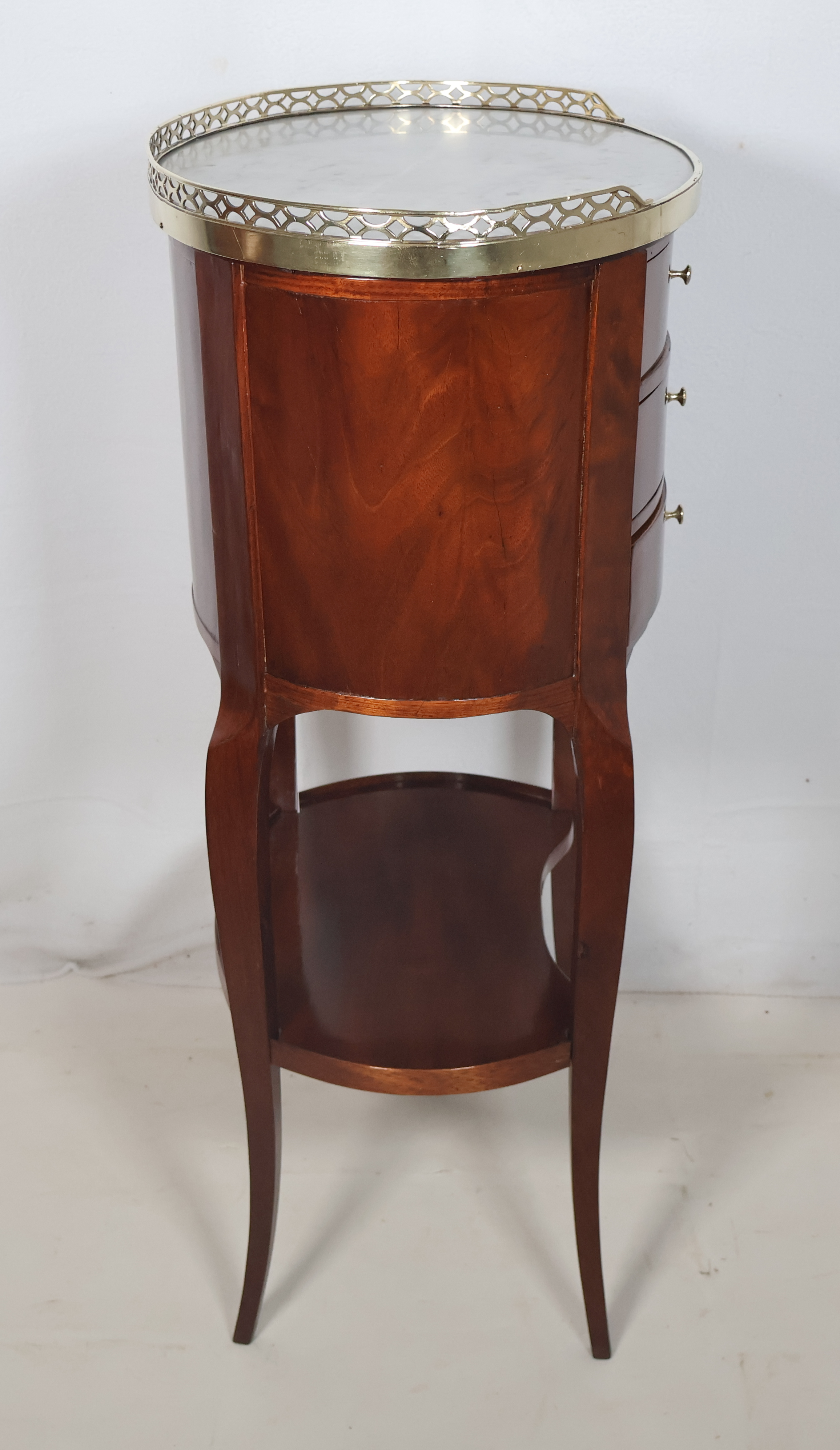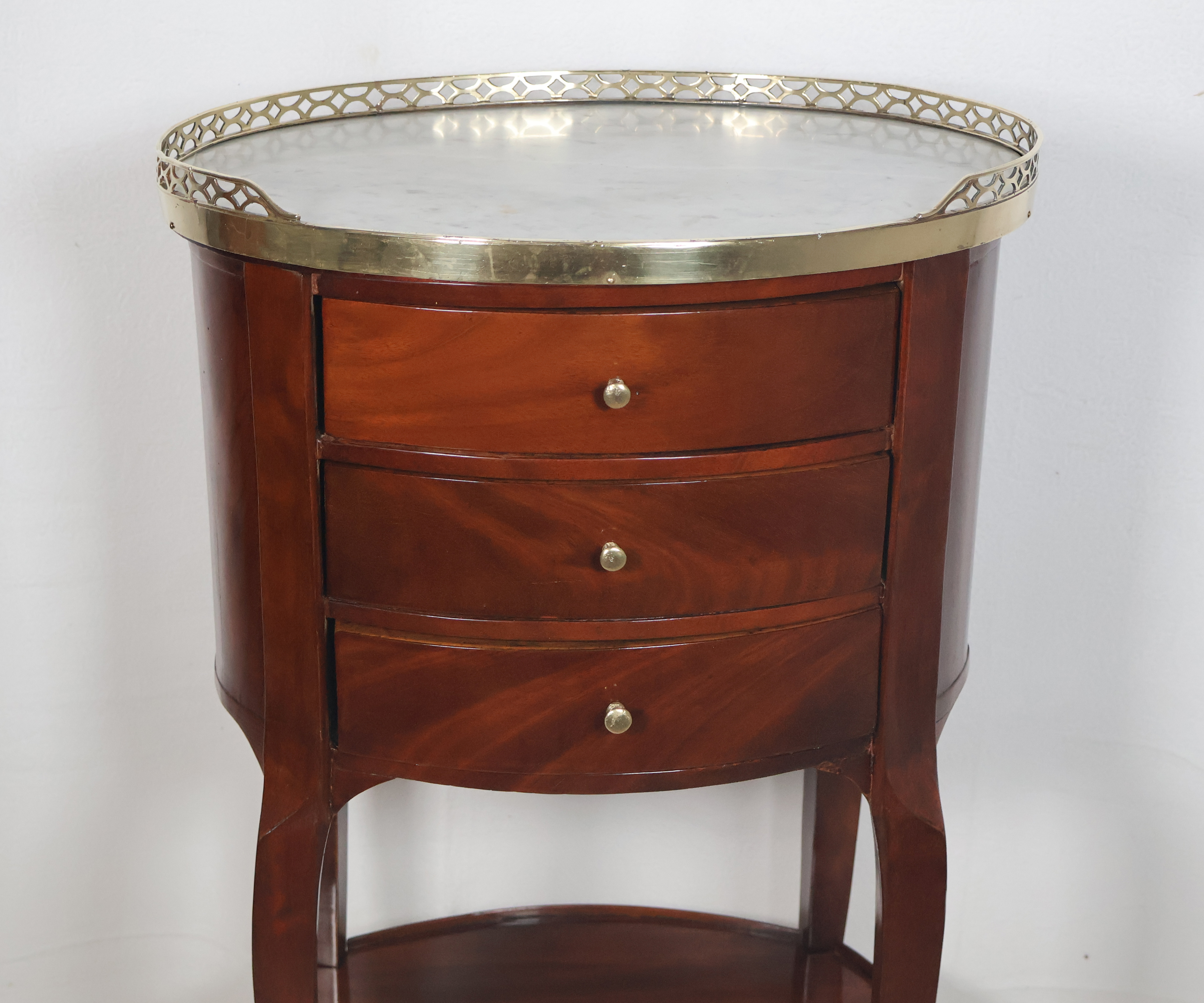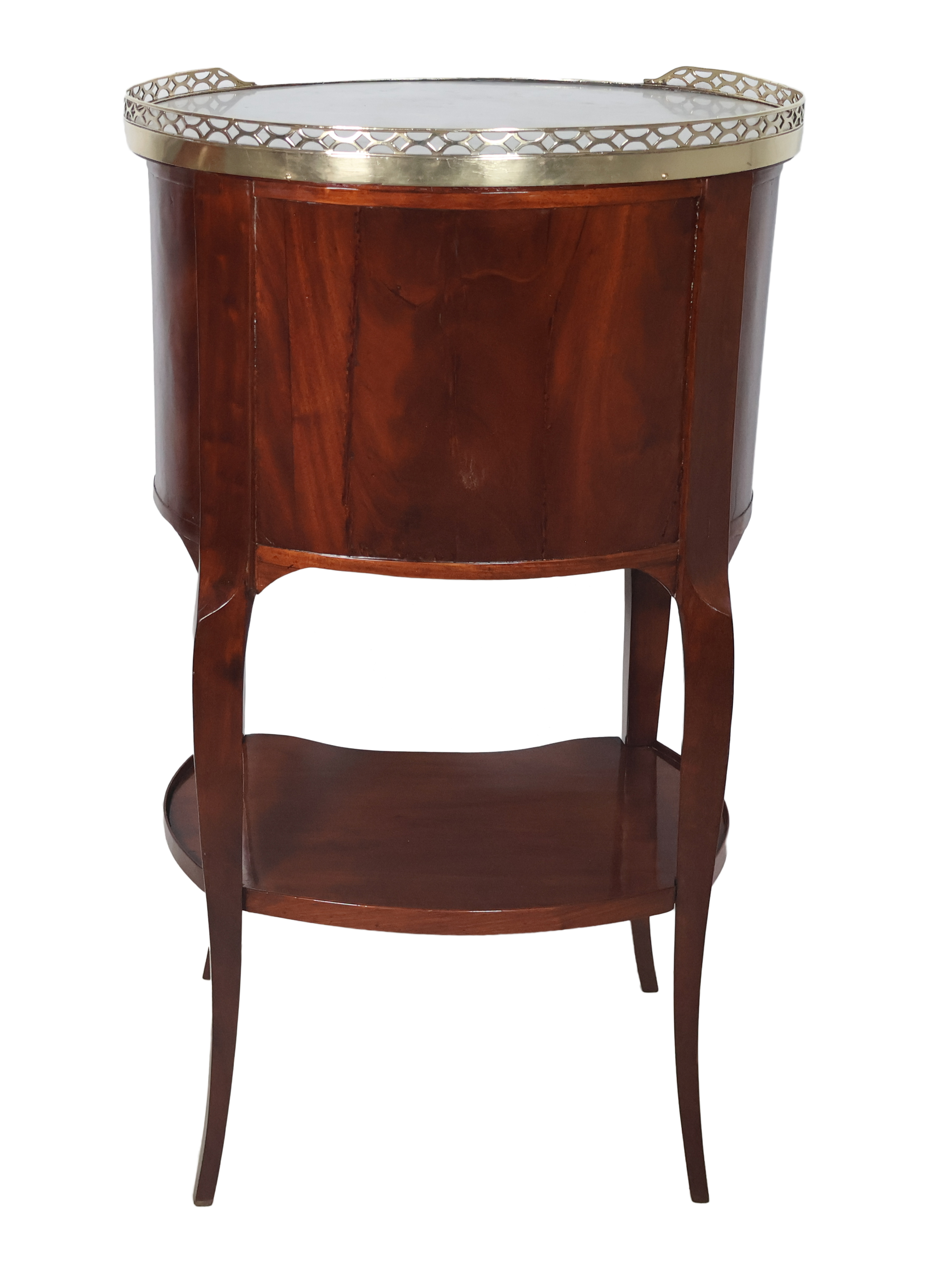 Dessus en marbre blanc entouré d’une galerie ajourée en bronze doré.