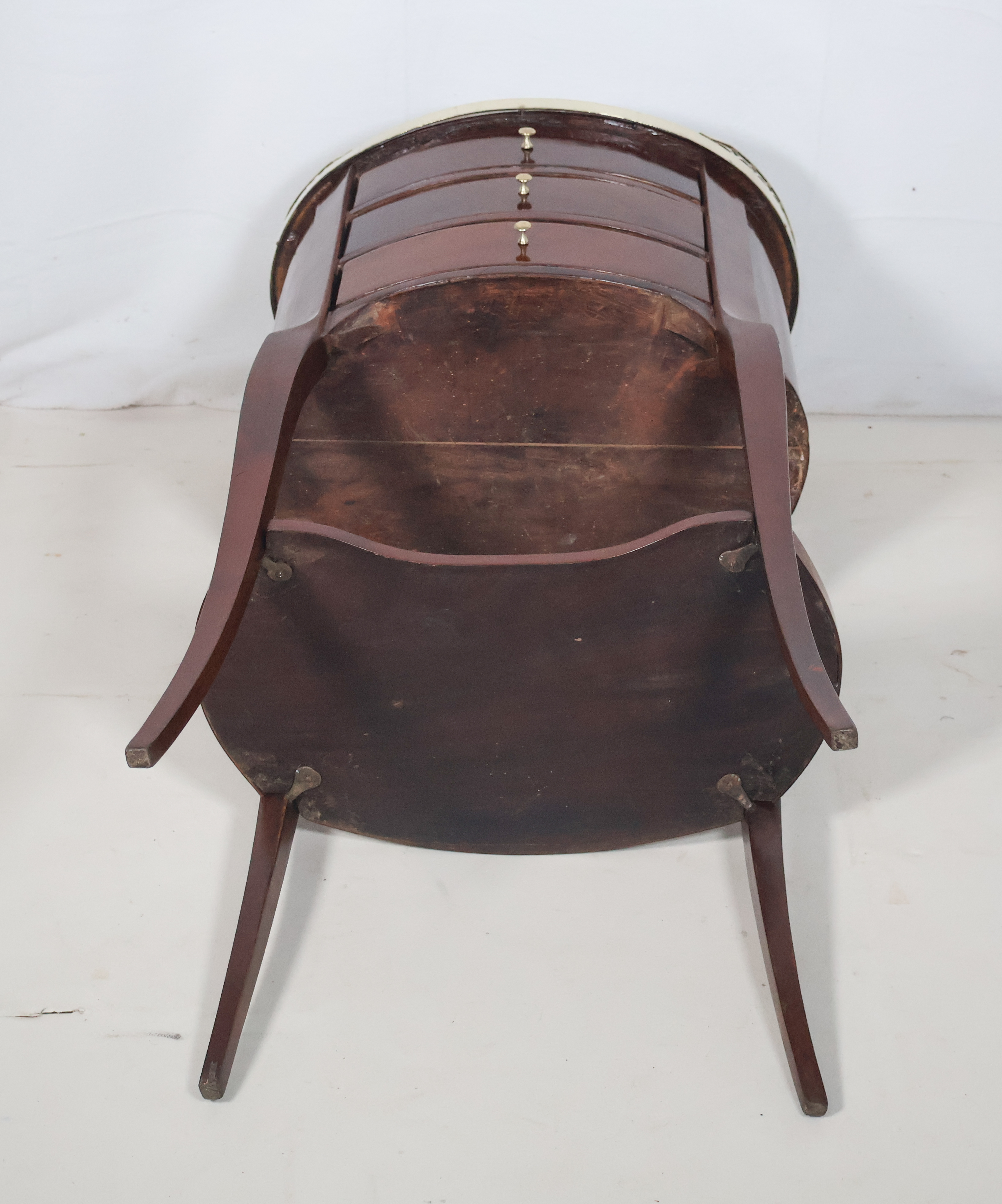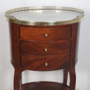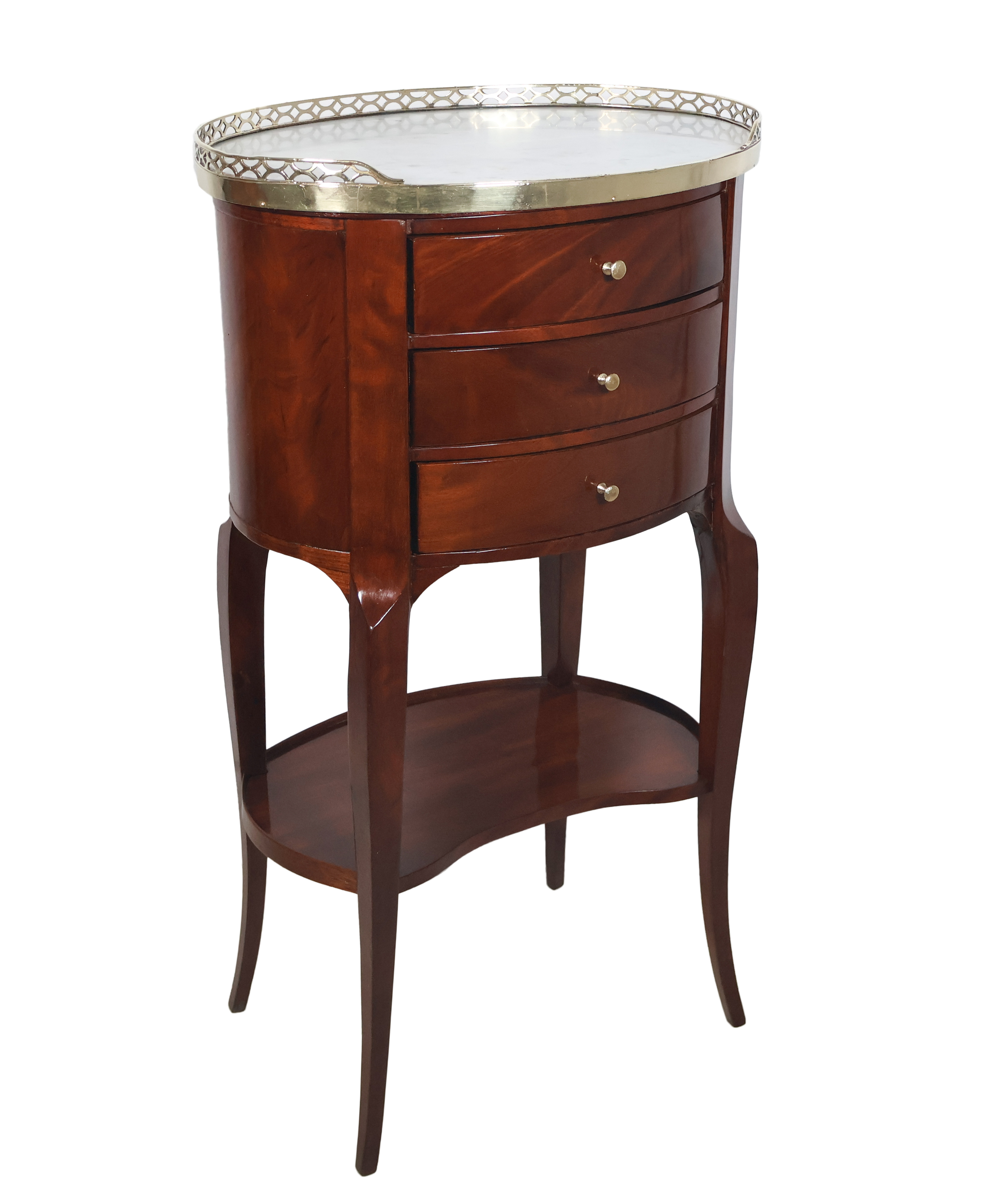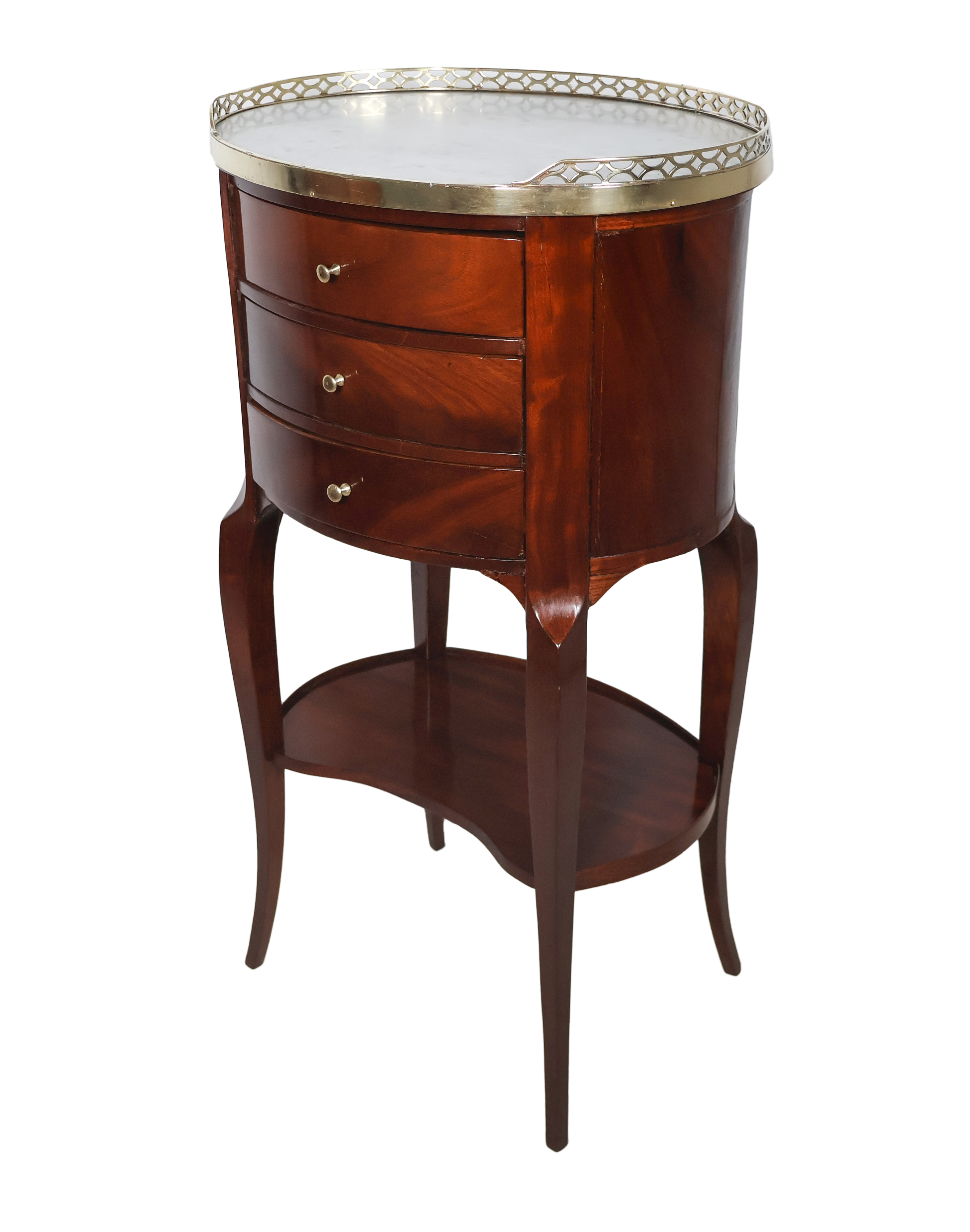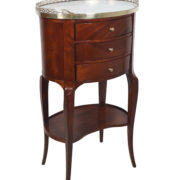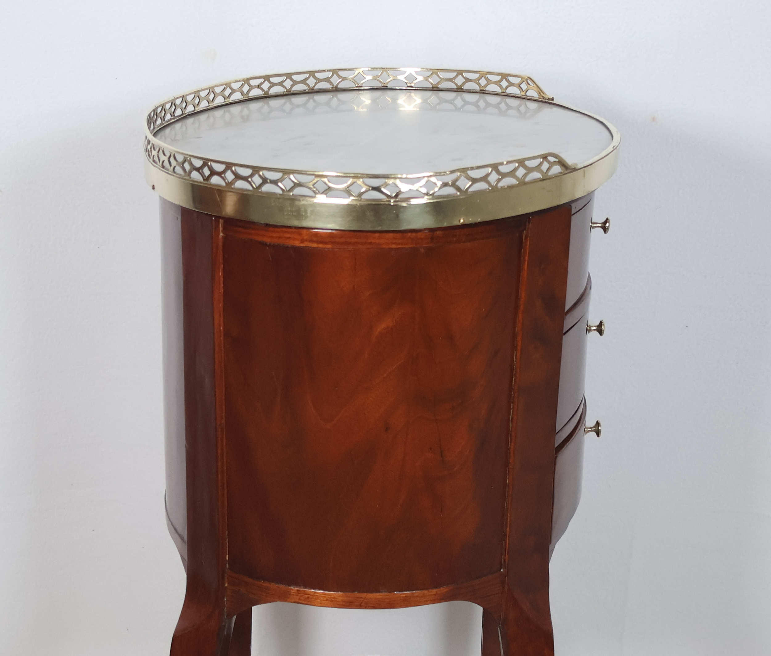 Dessus en marbre blanc entouré d’une galerie ajourée en bronze doré.
