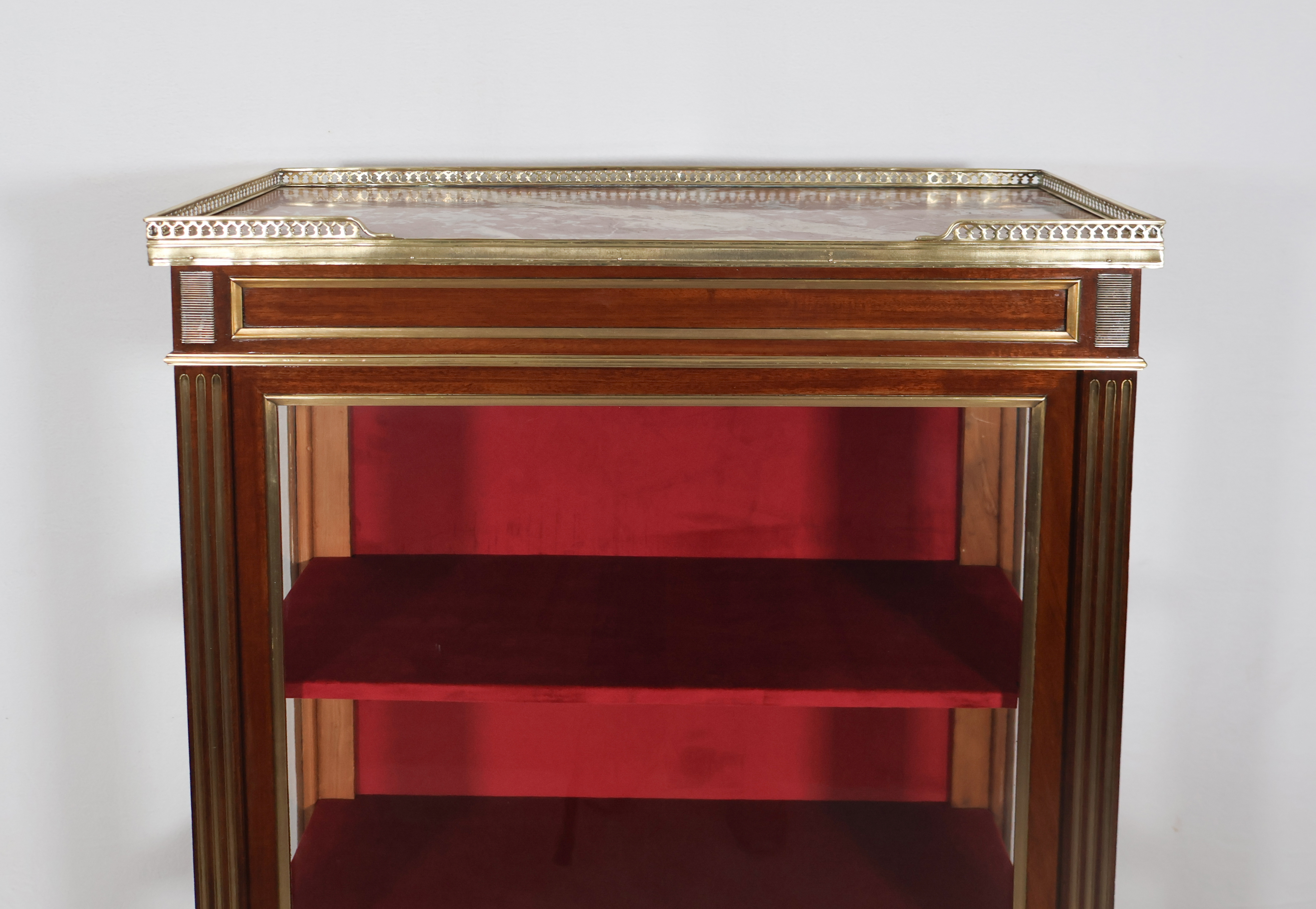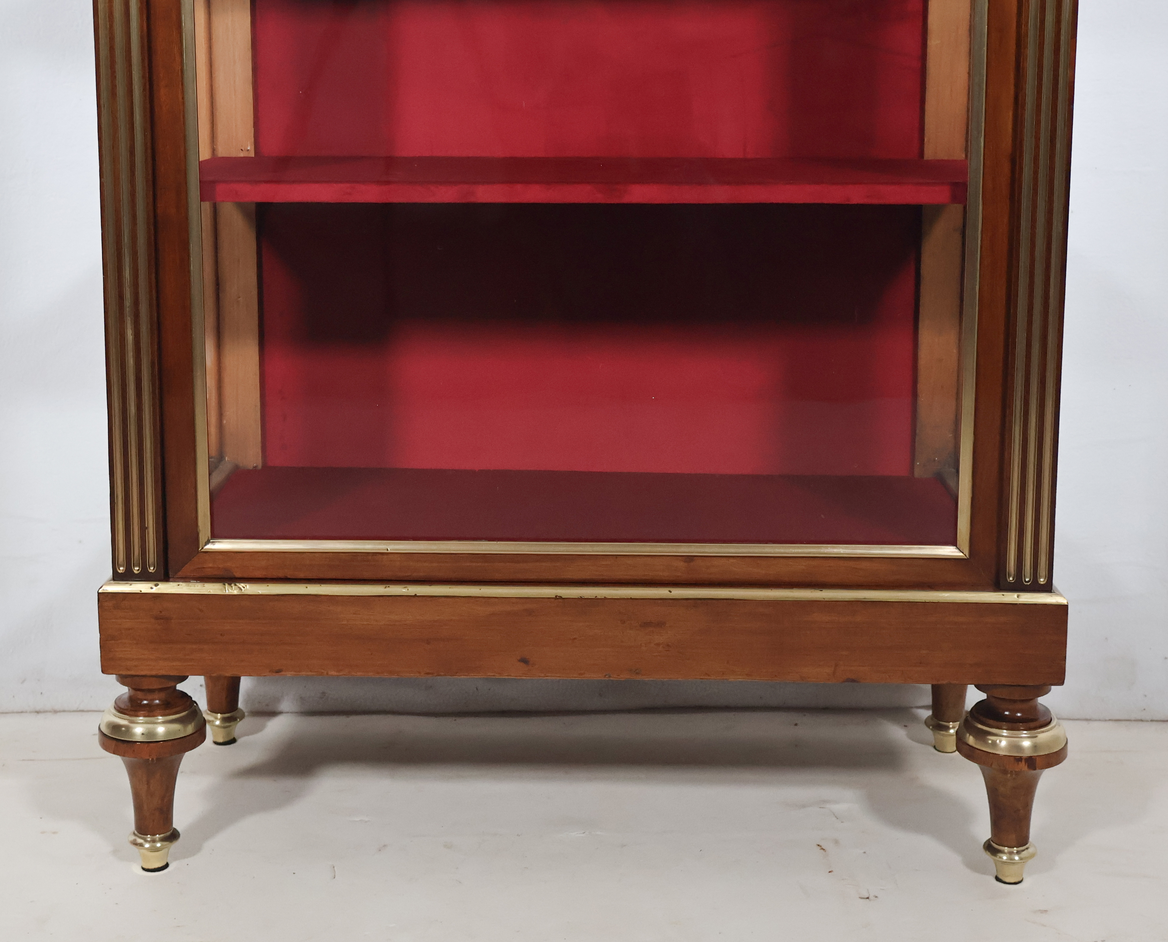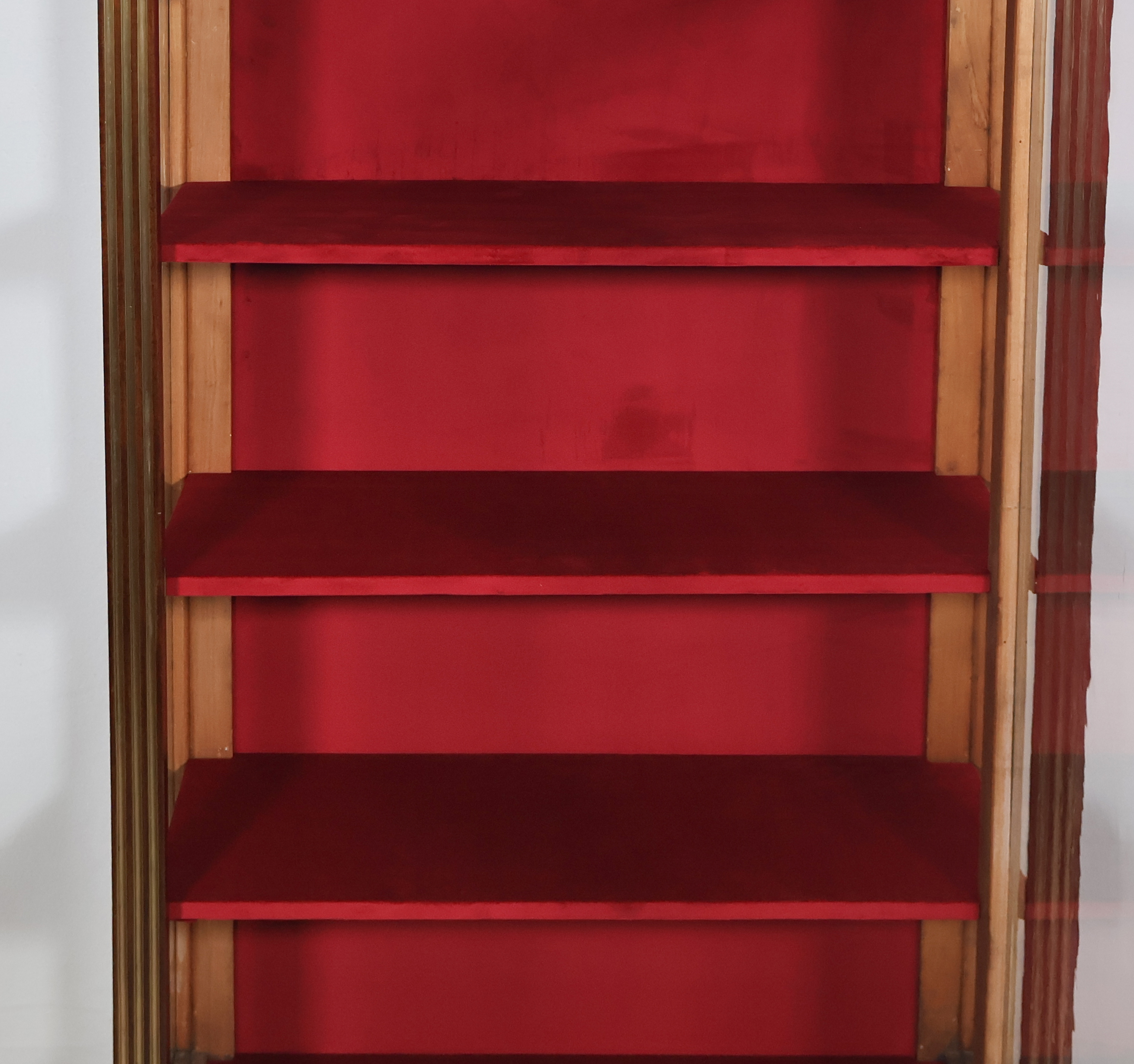 Les trois étagères intérieures et le fond sont recouverts de velours carmin refait à neuf