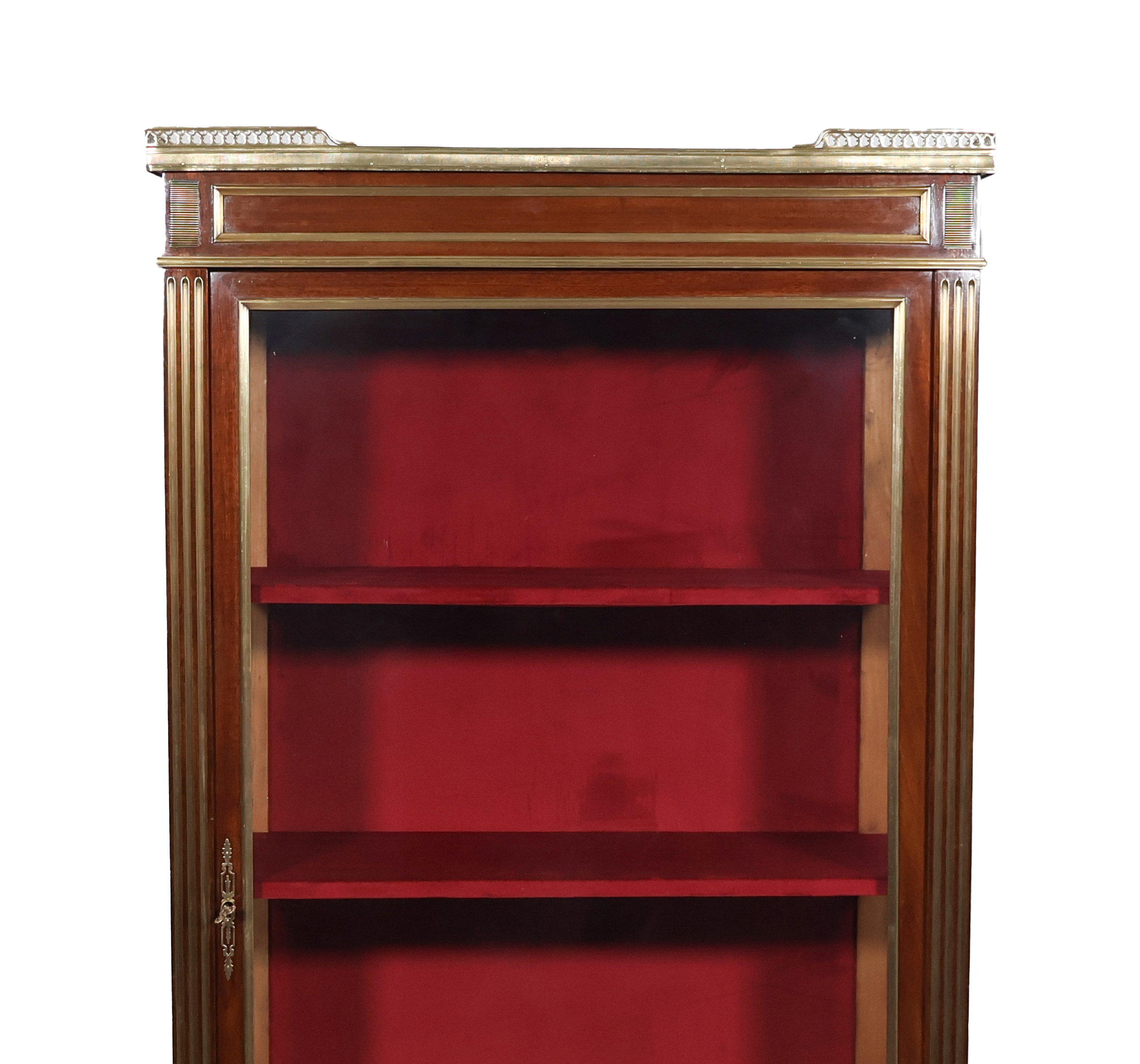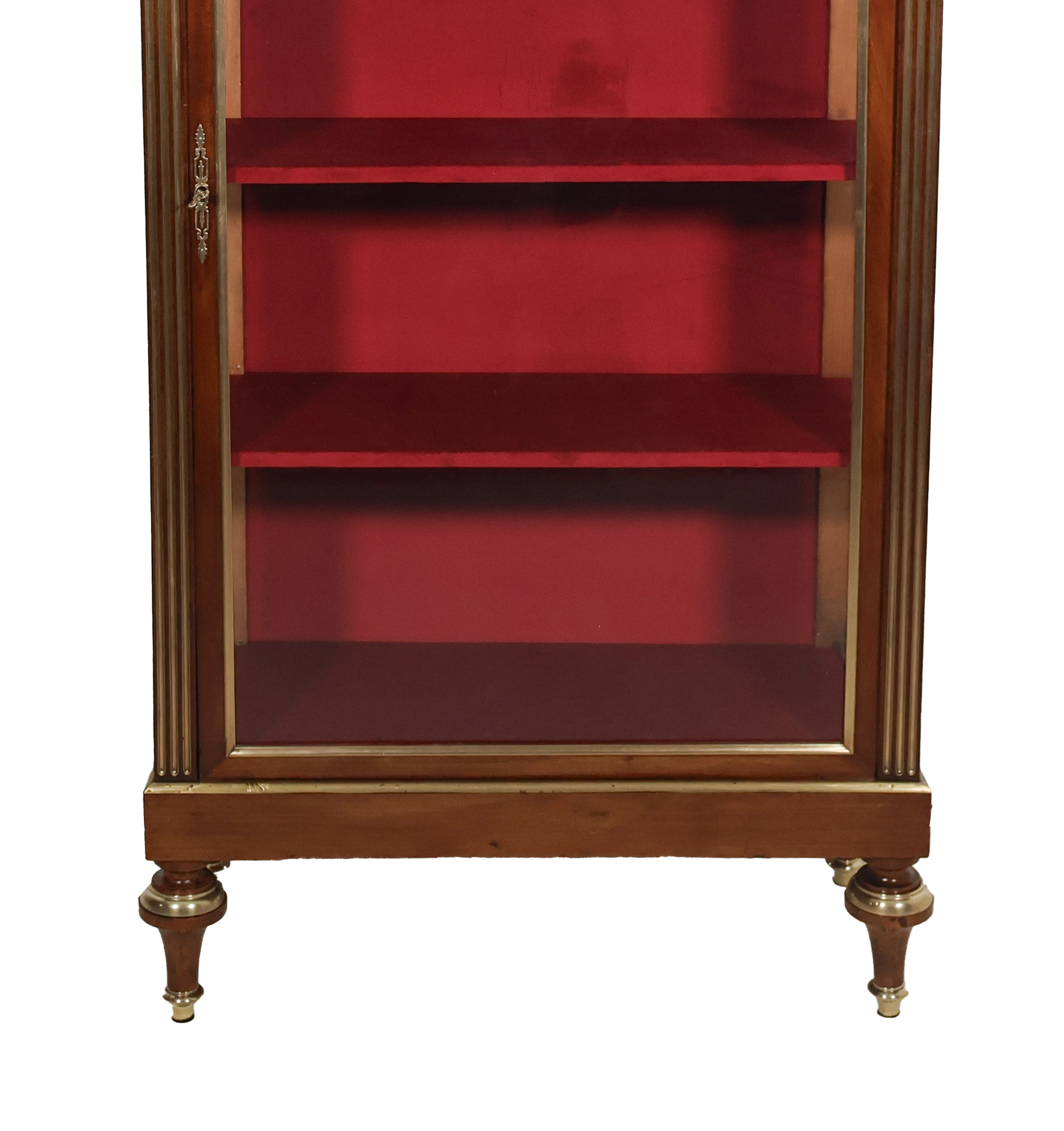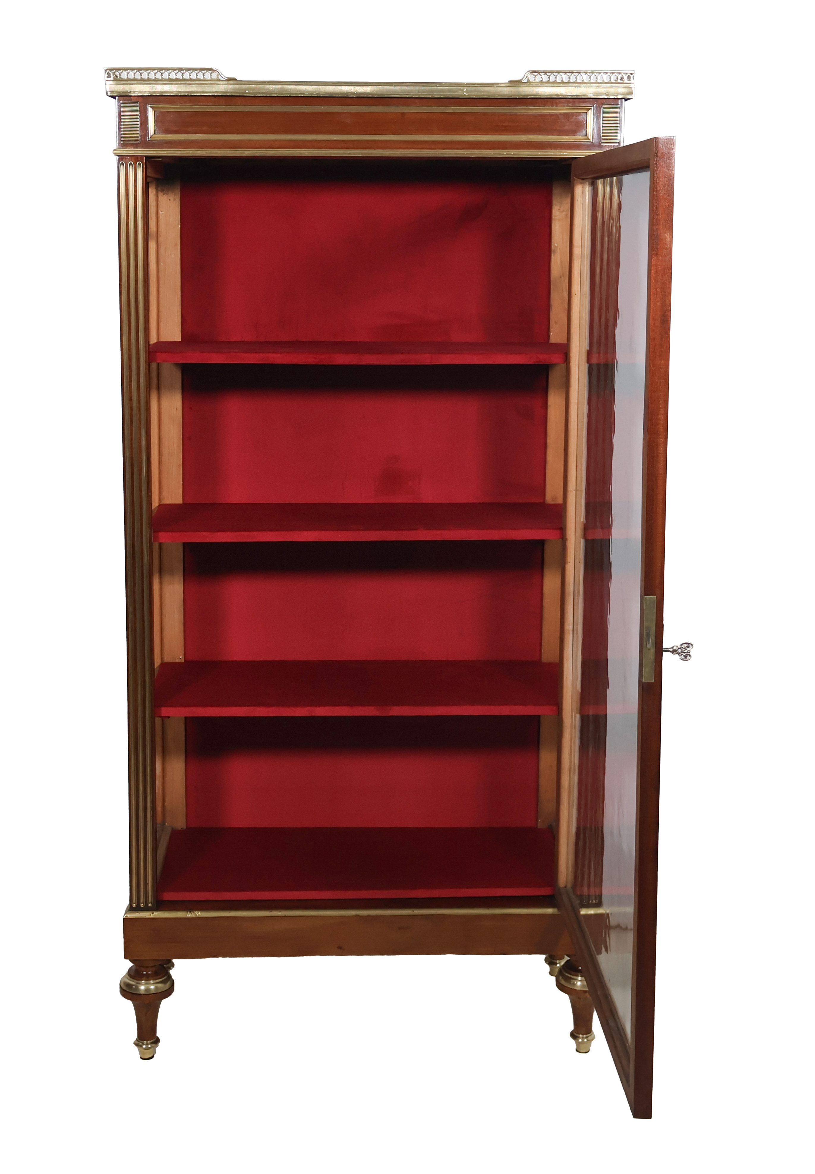Les trois étagères intérieures et le fond sont recouverts de velours carmin refait à neuf
